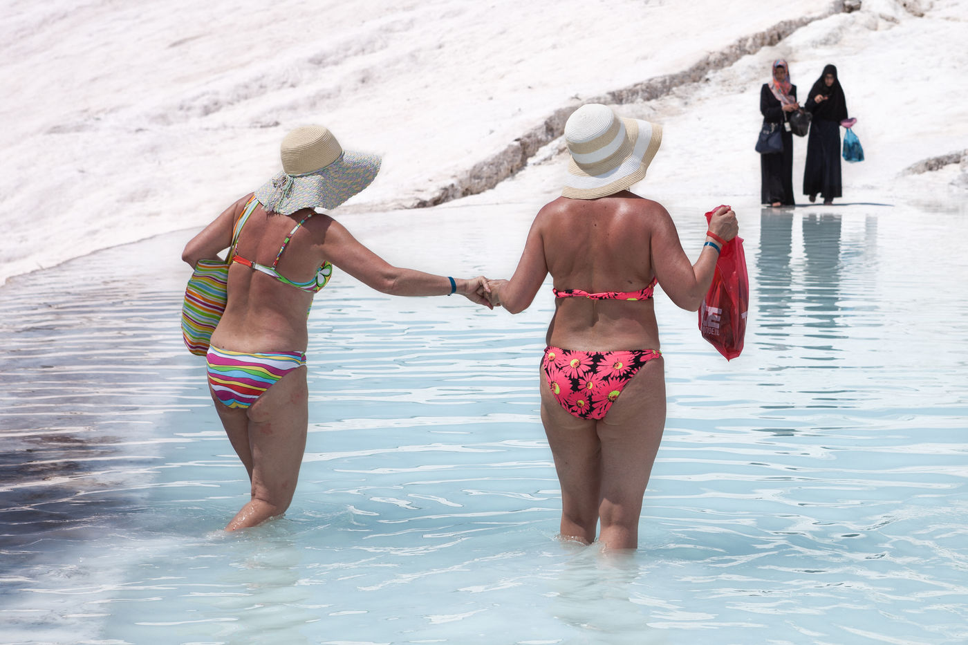 In this magical place in the south-west of Turkey, a hot spring flows from the bowels of the mountain. On contact with the air, water turns into calcium carbonate and creates a magical landscape known as Pamukkale.