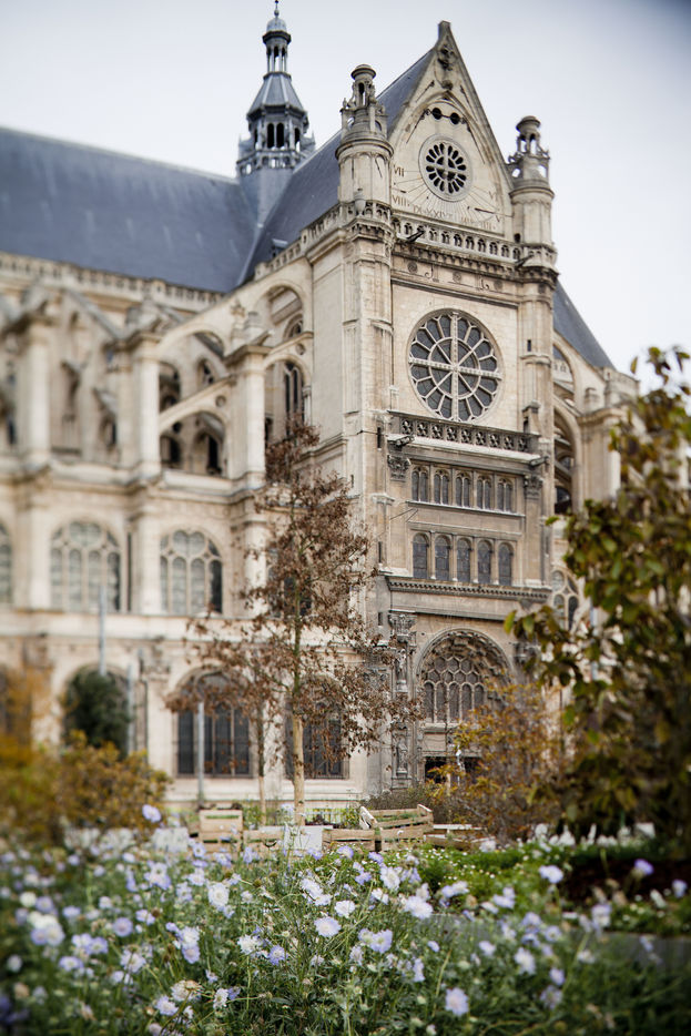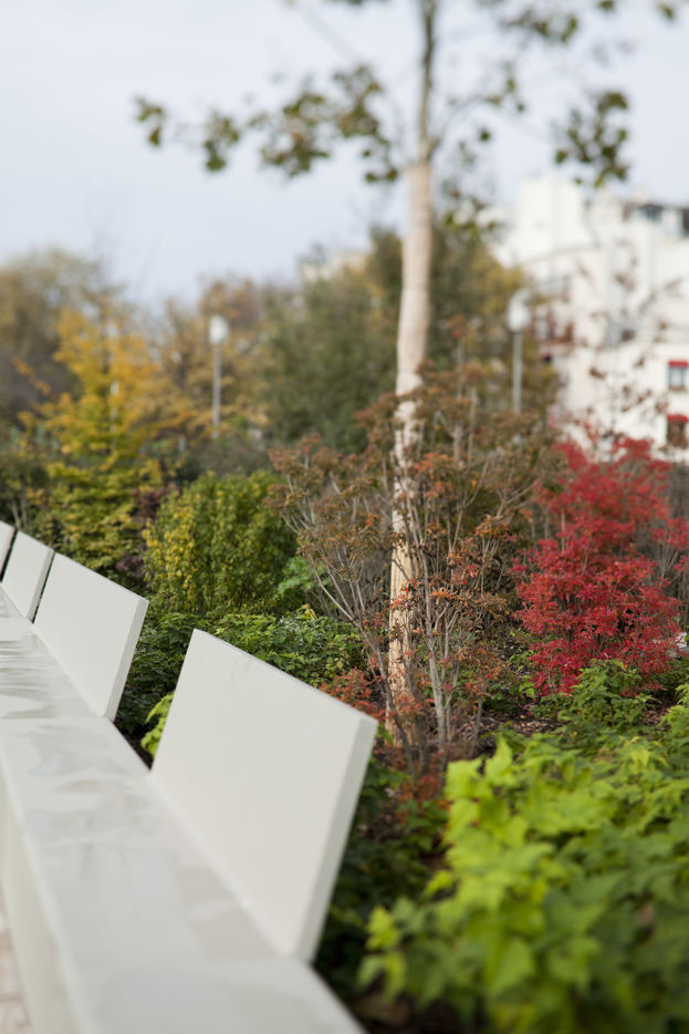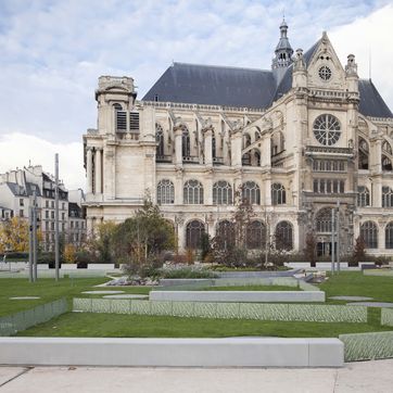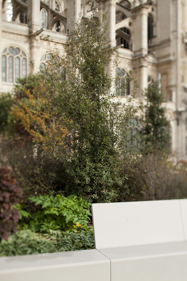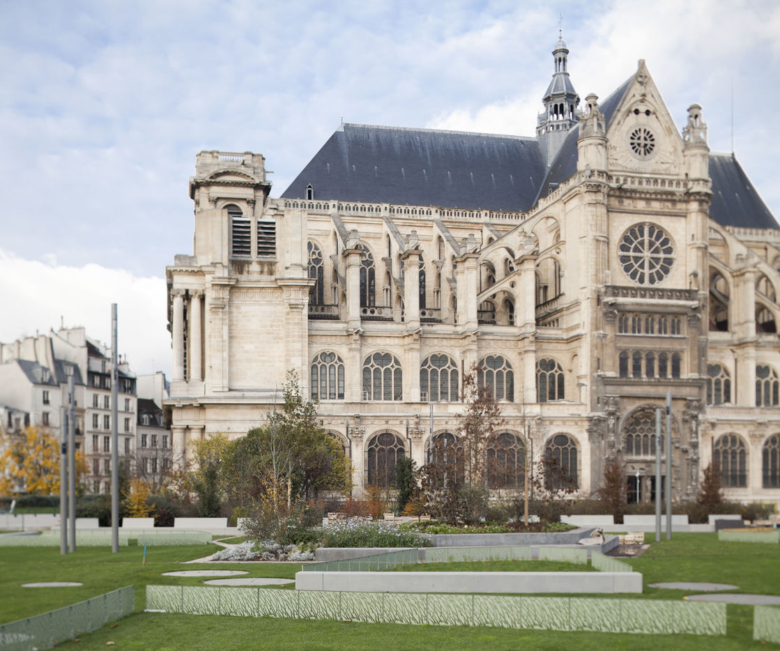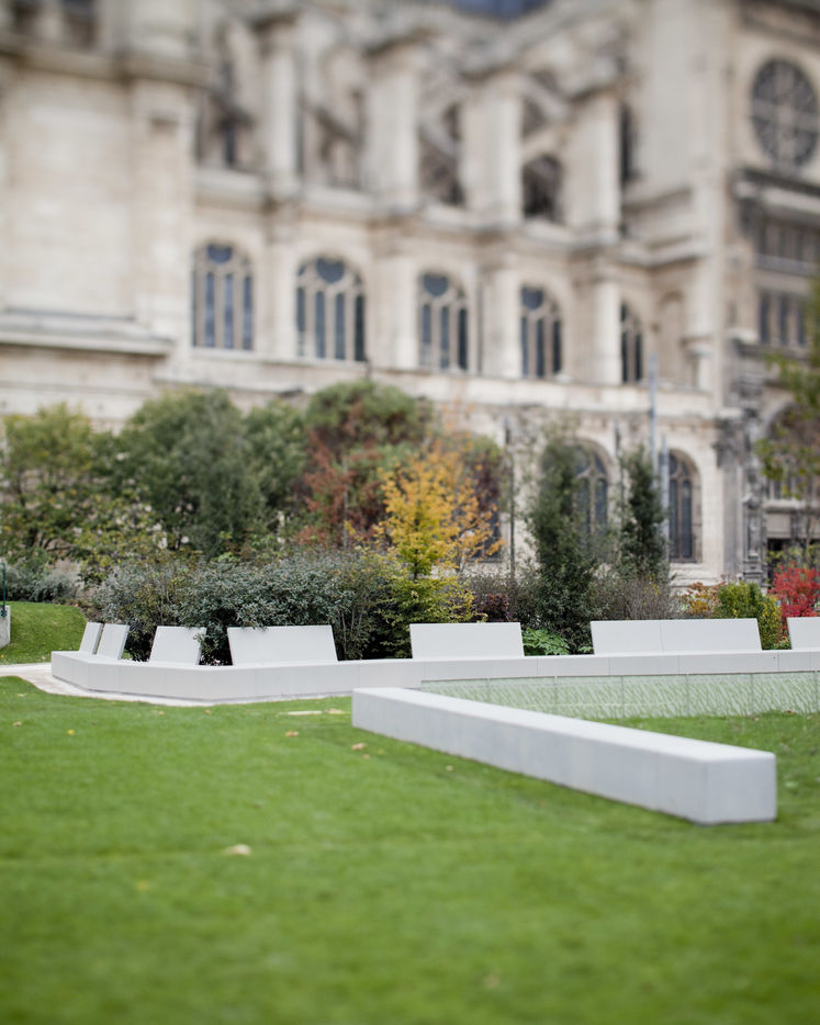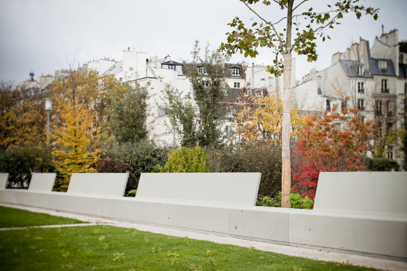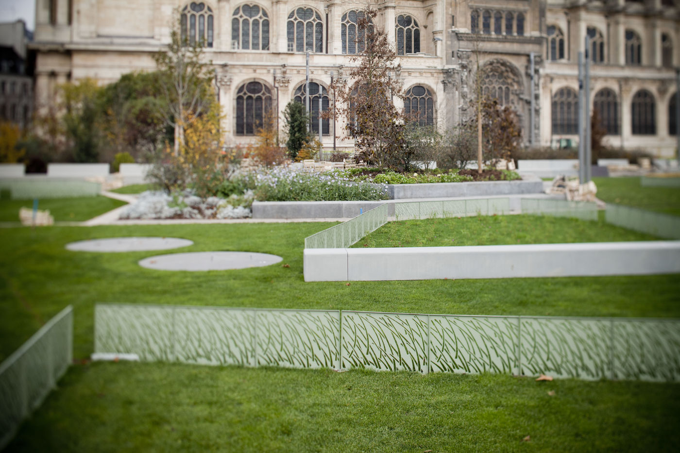 chantier et réaménagement des Halles de Paris. livraison et ouverture au public du jardin Nelson Mandela, partie nord-ouest. SEURA architectes - Florence Bougnoux, Jean-Marc Fritz et David Mangin. Philippe Raguin paysagiste. décembre 2013.