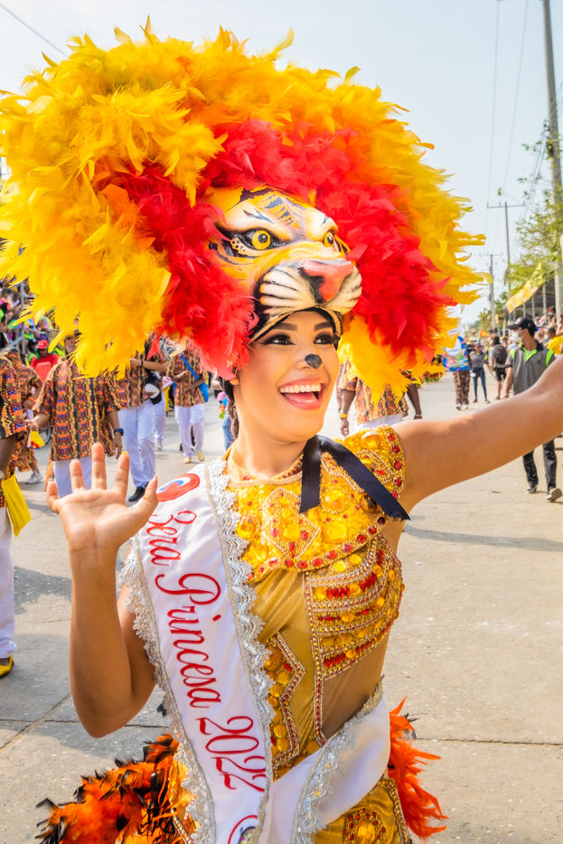 Portrait of a dancer in the carnival of Baranquilla, Colombia, the second largest carnival in South America. Thousands of amateurs and professionals pay tribute to traditional dances such as the danza del caiman, Garabato, Marimondas, congo or caiman.