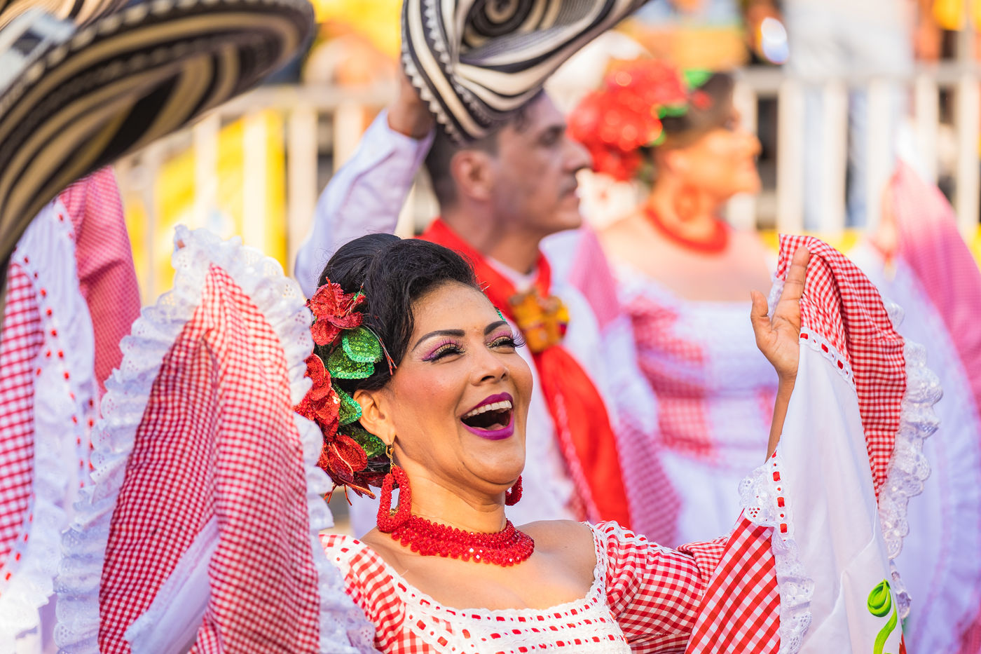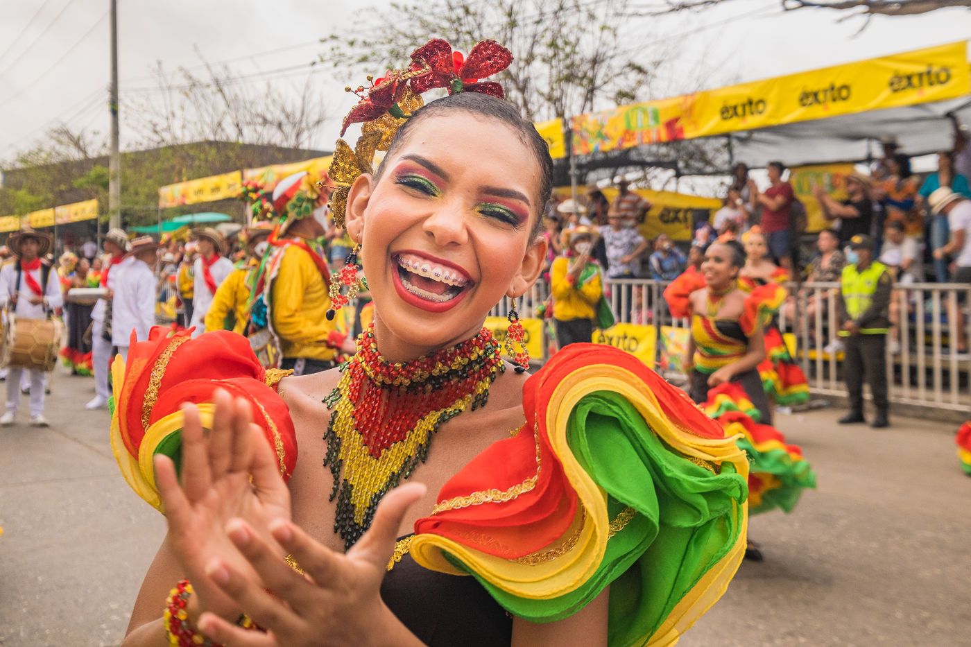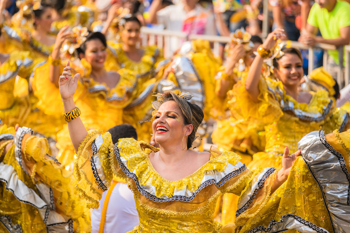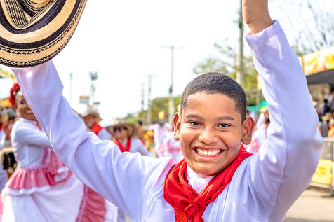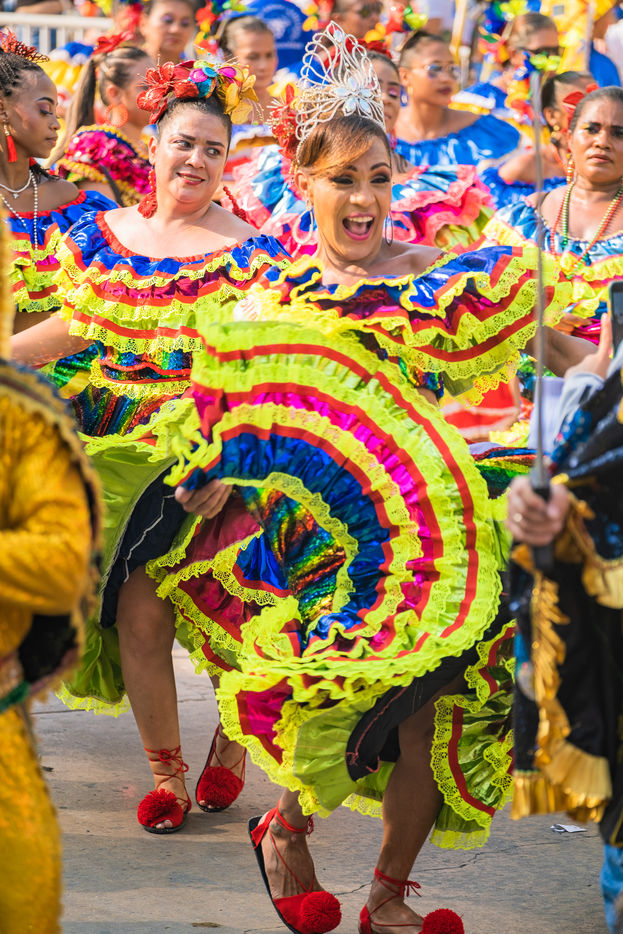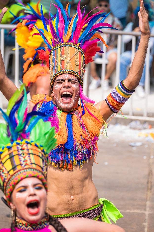 La joie est l'energie la plus significative dans le carnaval de Baranquilla, en Colombie, le deuxième plus grand carnaval d'Amérique du Sud. Des milliers d'amateurs et professionnels rendent hommage aux danse traditionnelles comme la danza del caiman, Garabato, Marimondas, congo ou caiman.