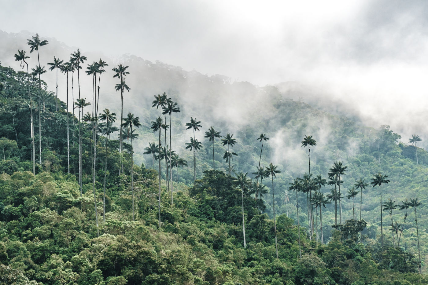 The Cocora Valley is a unique place in Los Nevados, right in the middle of the zona cafetera, the main coffee plantation of Colombia. Land of the famous Quindio wax palm, the largest palm tree in the world. This emblematic tree is today a real tourist attraction but it will soon disappear because of deforestation and disease.