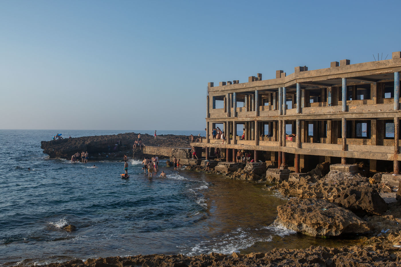 They come from the Soummam Valley in Kabylia, in part, others come from the interior of the country, the Highlands where the summer temperature beats all records in the Mediterranean basin. They are aged between 15 and 25 years. A youth that is thirsty to live, to express itself, to be recognized, estimated, valued, taken in charge. They rent buses and trucks to reach the "Platform", the carcass of a large building flirting with the sea in Boulimat, a seaside resort located in the department of Béjaia in Kabylia (200 km east of Algiers, Algeria). A project that should house a hotel-bar-restaurant and which was stopped by the public authorities during the Black Decade of the 1990s for lack of building permits according to residents. They flock there by tens in search of strong sensations, to the height of their frustrations born from the absence of leisure and spaces of multiform expressions all year long. This also comes for the first time after two long years of confinement, consequence of Covid-19. They have fun by putting their lives in danger, by throwing themselves into the water sometimes from a floor, sometimes from the upper terrace of the building in question. As for the sharp rocks that emerge from the water here and there and in the middle of which one dives, one does not make a fuss. Satisfying a certain need for escape is far more important. Then a moment of respite in the shade around a few beers, a Chicha and so much for the detritus and shards of bottles that litter each piece of this space that they have squatted to make their resort for a day. The discussions turn essentially around the prowess of the ones and the others in the art of the dive. Tomorrow is another day.