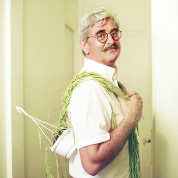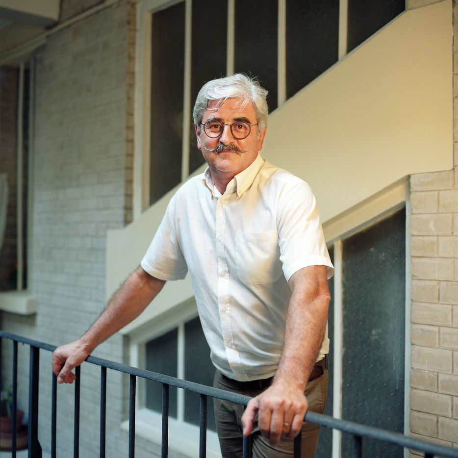 Portrait de Claude Gruffat, candidat aux élections européennes de 2019, député européen Europe Ecologie-les Verts (EE-LV), ancien entrepreneur et président (PDG) de Biocoop. Il pose ici chez lui à Paris.