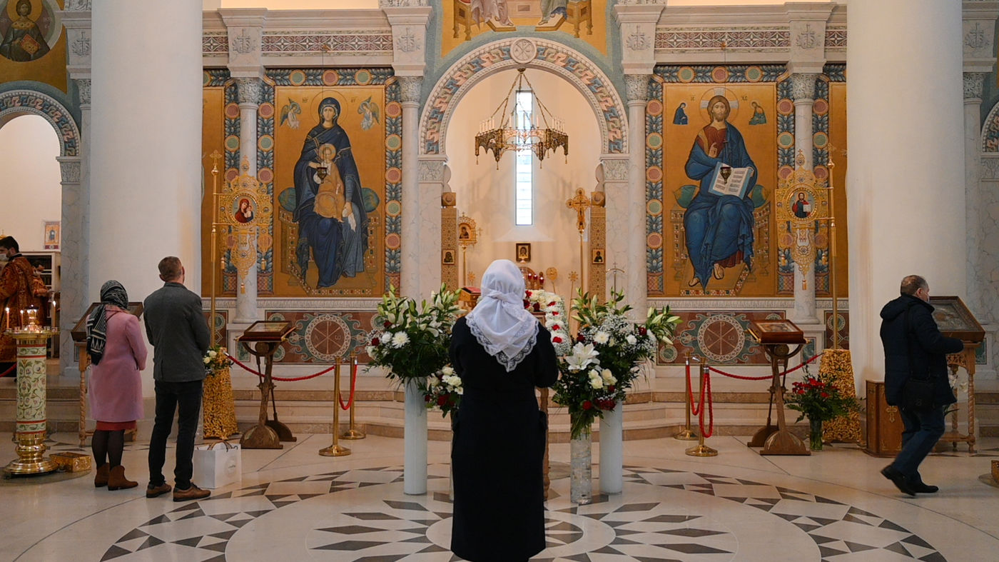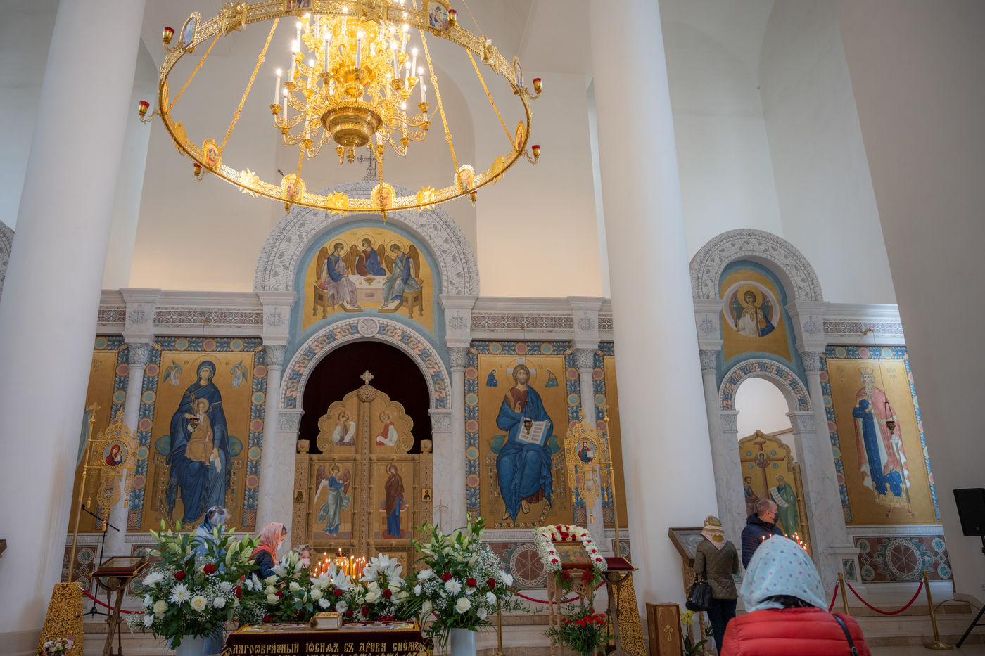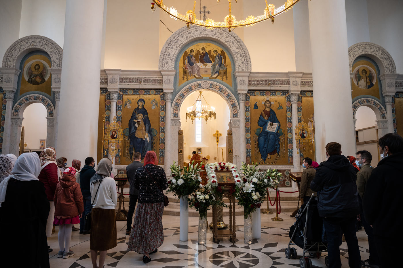 Unfortunately, the night services, in view of the curfew, were held behind closed doors in the Holy Trinity Cathedral.