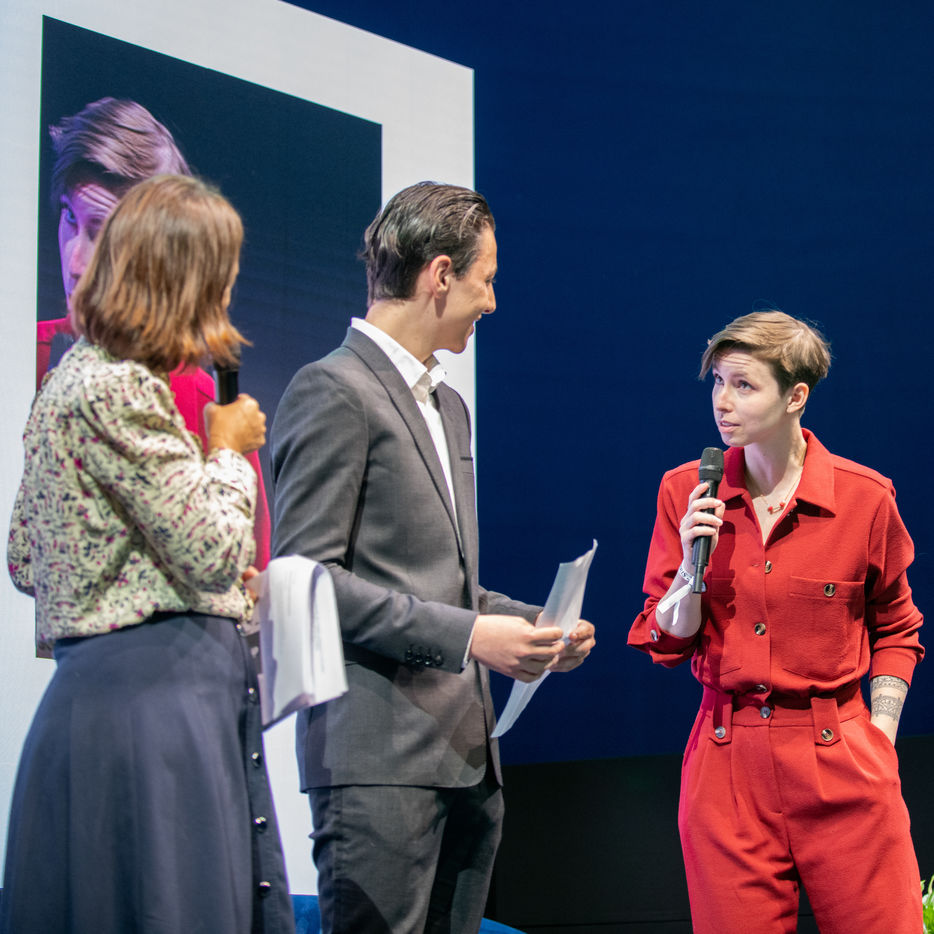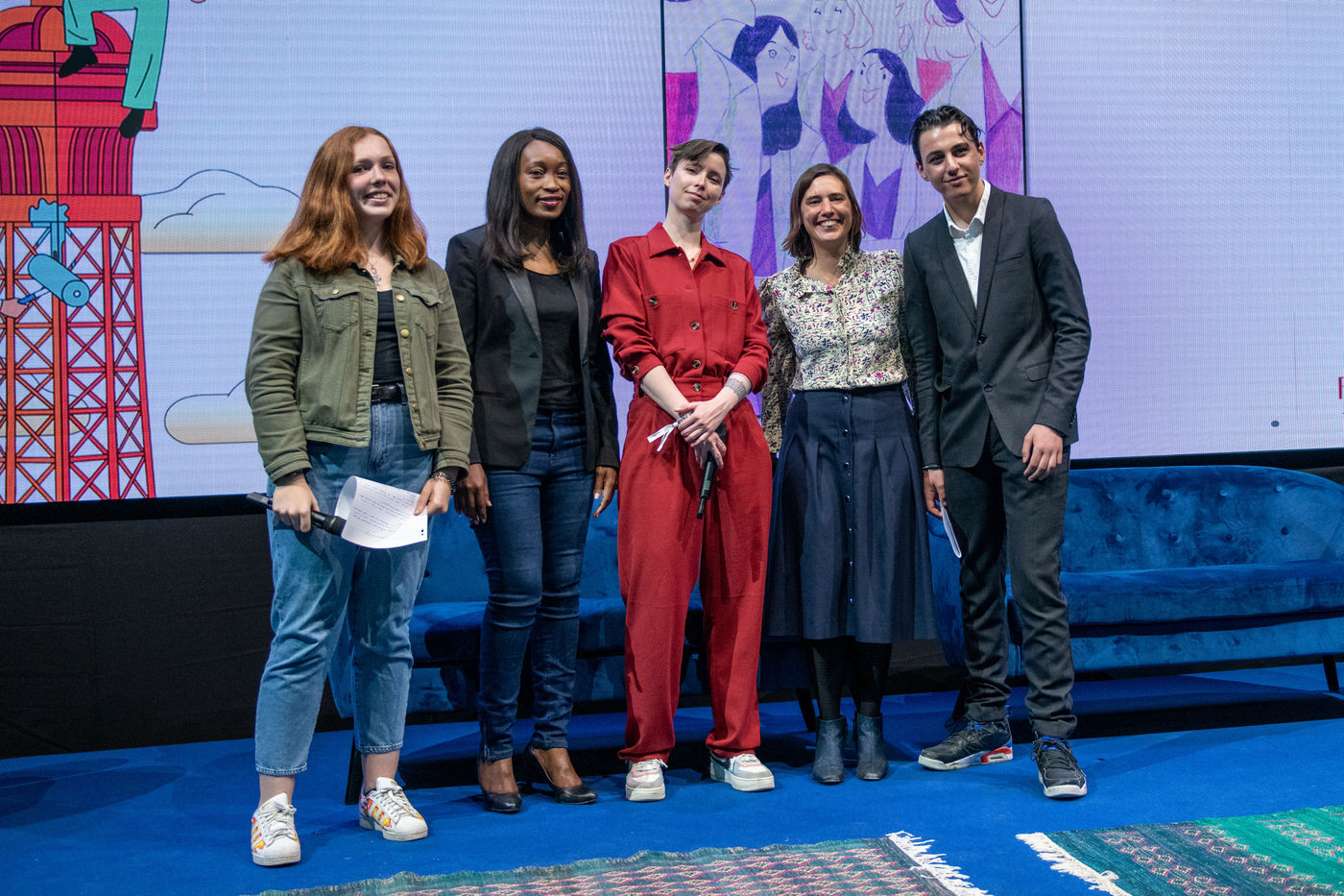 A prize-giving ceremony in the presence of Mathilde Serrell, Master of Ceremony, an elected official of the Ile-de-France Region and the 8 prize-winning authors.