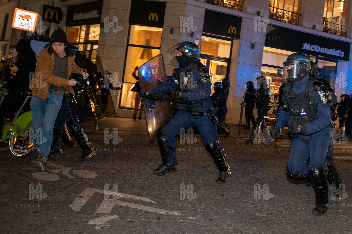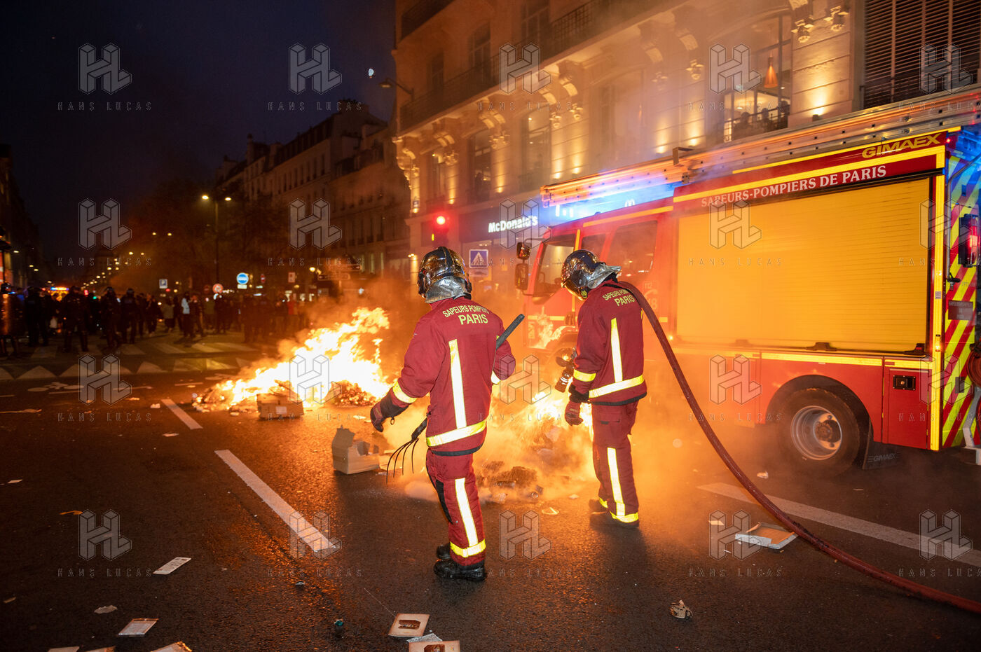 Firefighters and police forces on the evening of the March 23 demonstration.