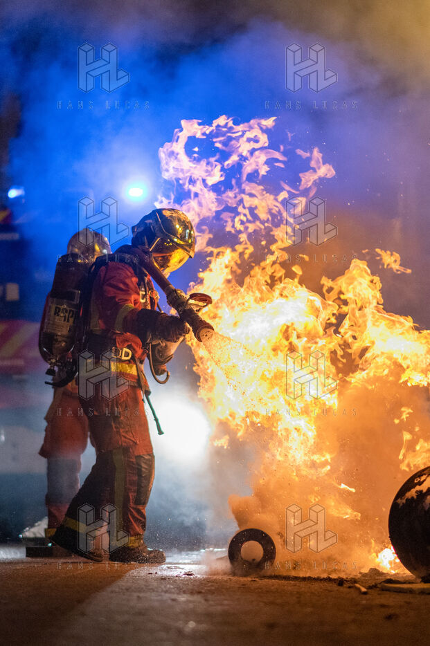 Firefighters and police forces on the evening of the March 23 demonstration