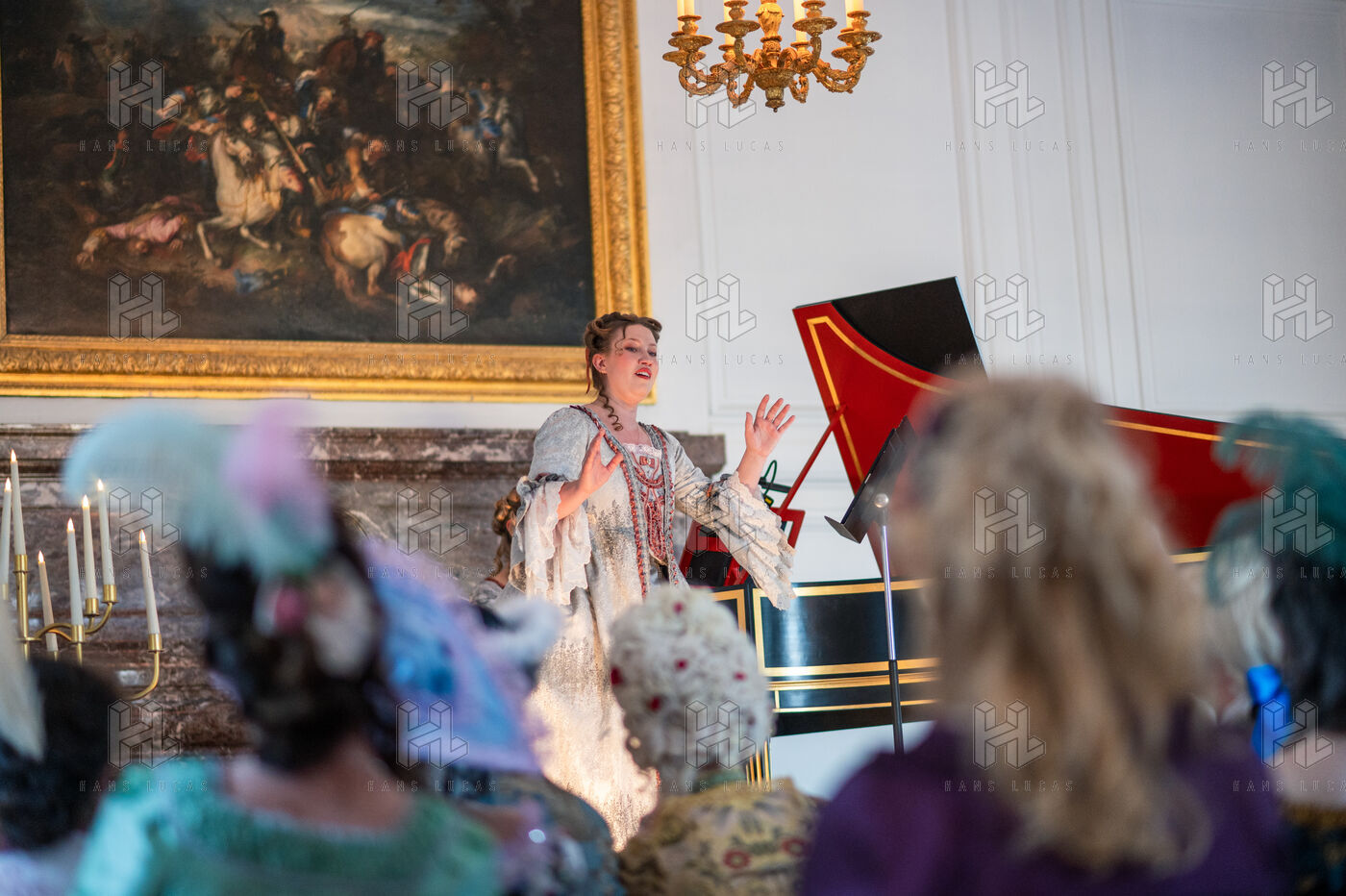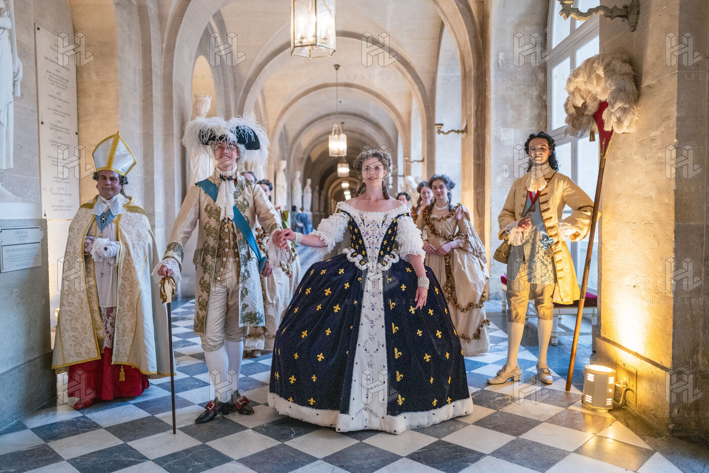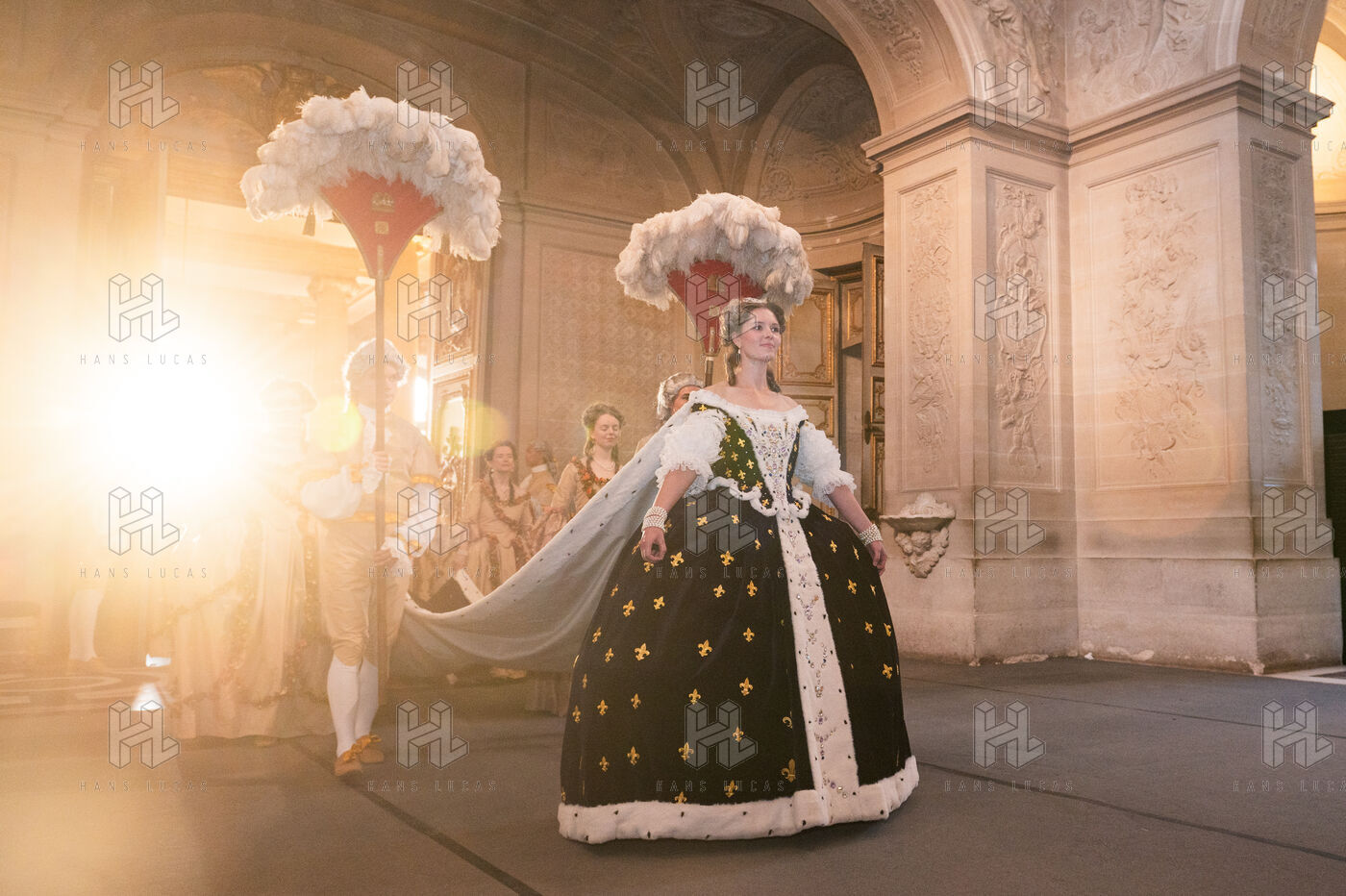 Fêtes Galantes, soirée costumée a la Galerie des Glaces de Versailles, France, le 2 juin 2025. Les convives sont invites a venir en costume d époque et a revivre le mariage de Marie Leszczynska, Princesse de Pologne, et de Louis XV.