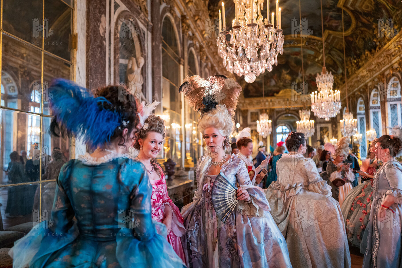 Fetes Galantes, costumed evening at the Hall of Mirrors in Versailles, France, on 2 June 2025. Guests are invited to come in period costume and relive the wedding of Marie Leszczynska, Princess of Poland, and Louis XV.