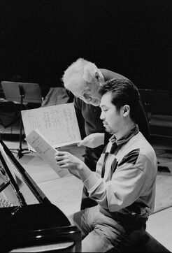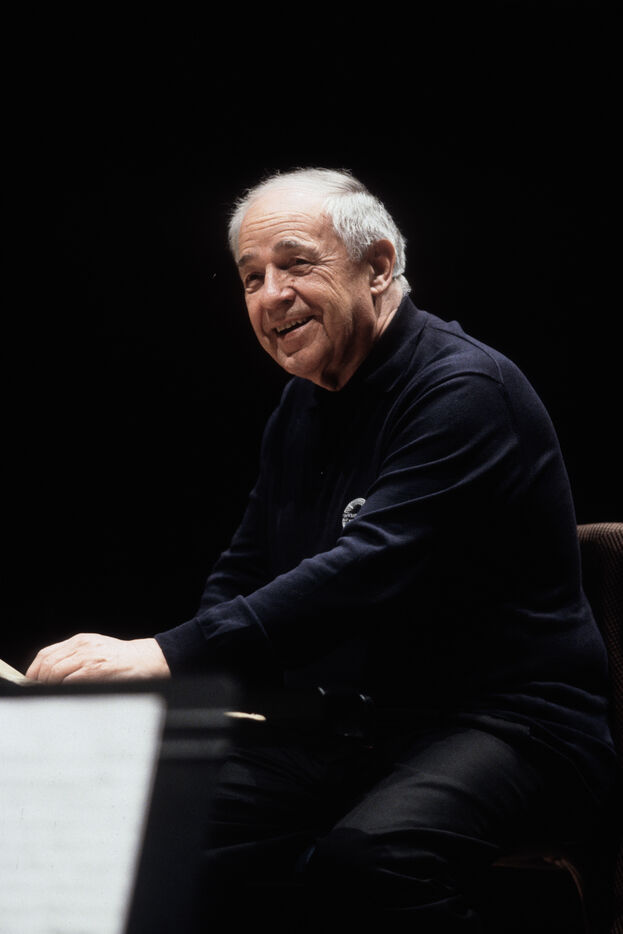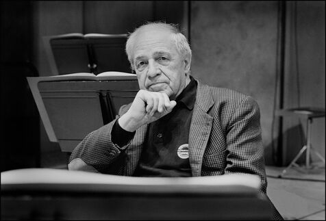 Le compositeur et chef d'orchestre français Pierre BOULEZ en répétition avec l'Ensemble Intercontemporain à la Cité de la Musique à Paris.