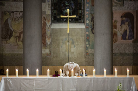 Holy Week in Nanterre in 2014 in Sainte Geneviève Cathedral with Mgr Gérard DAUCOURT (bishop of Nanterre between 2002 and 2013) and Father Franck JAVARY.