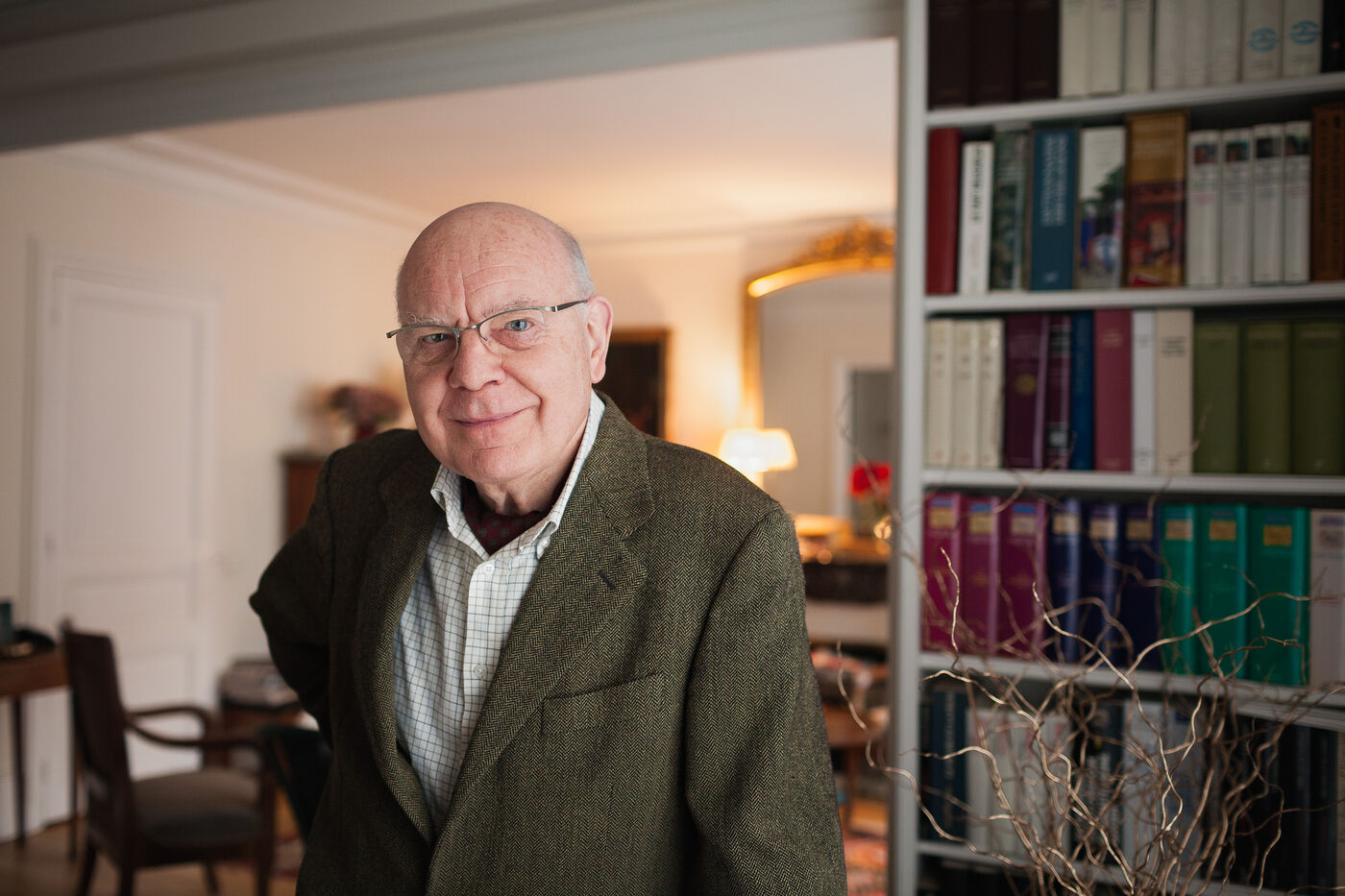 Portrait of historian André Vauchez, at home in Paris in 2009.