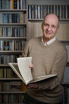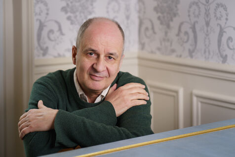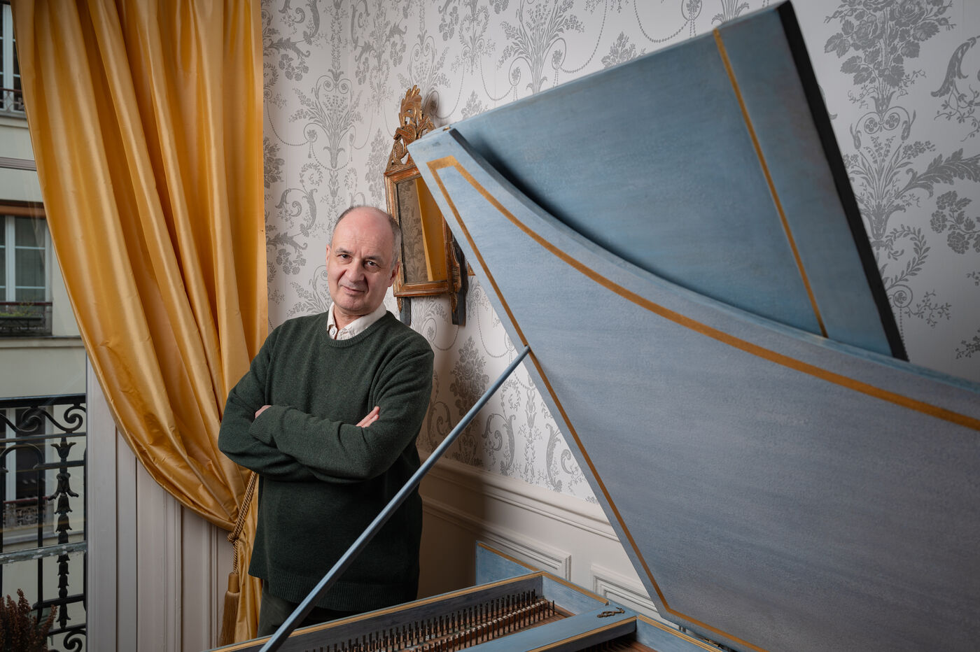 Portraits of French harpsichordist Olivier Baumont, professor at the Conservatoire National Supérieur de Musique et de Danse de Paris, at home in 2025.