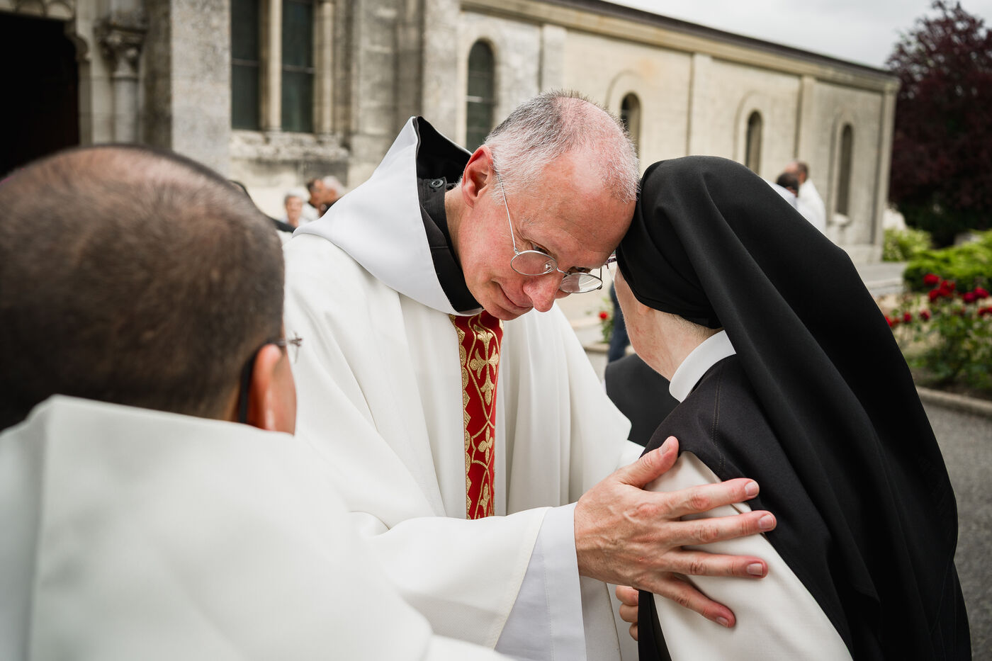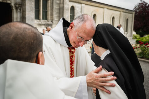 Mass celebrated by Mgr Bruno FEILLET, bishop of SEEZ, for Father GUERRIC and Father THOMAS' 20th anniversary of priesthood at the Abbaye de la TRAPPE in Normandy, France, on August 4, 2022.