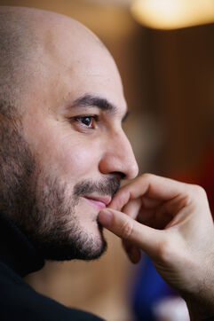 Portraits de l'acteur français Mehdi DJAADI réalisés à l'Hotel Crowne Plaza pour le journal La Croix.