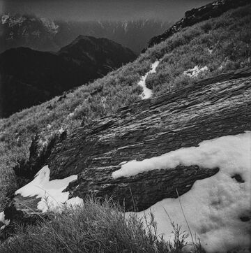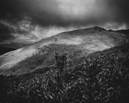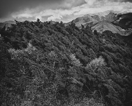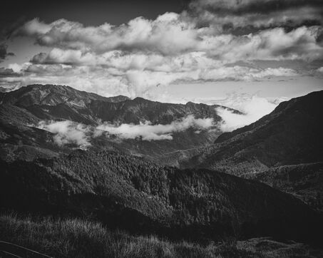 On the trail to Hehuanshan East Peak, vegetation clings to the steep slopes. Between tufts of grass, rock emerges, breaking through like an ancient memory, shattered by the cold, smoothed by the wind. Dead shrubs, eroded by frost and time, stretch their blackened branches toward the void, specters of another age. The mist arrives suddenly, rolling over the ridges and pooling in the hollows, erasing perspectives, swallowing the landscape. A heavy silence settles, as if the mountain is holding its breath.