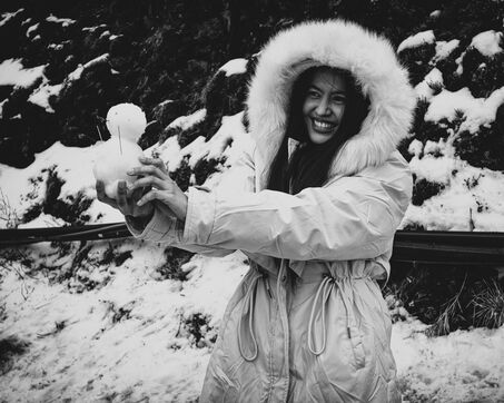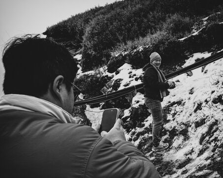 At the main summit of Mount Hehuan, the cold bites into the stone, seeping into its smallest cracks. The vegetation is trapped in ice, petrified, frozen like a still life under a crystalline varnish. Figures emerge from the fog—Filipino and Indonesian workers, fascinated by the snow they are seeing for the first time. They touch it with their fingertips, gather it, press it together, as if trying to unlock a mystery. Their laughter rings through the icy air, briefly breaking the summit’s silence.
