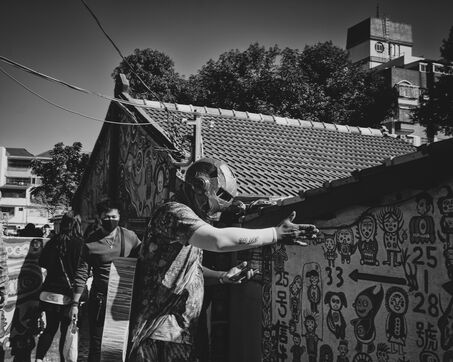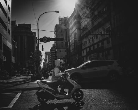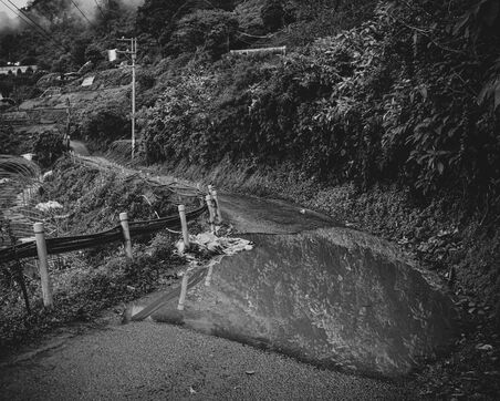 The descent toward Nantou is gentler, the road winding between tea plantations, between orchards suspended in a sea of clouds. Everything seems to float, bathed in diffuse light. Below, Taichung stretches between mountain and ocean, a city with an uncertain geography, where buildings rise without a clear order. A few glass and steel towers puncture the sky, but corrugated metal still dominates, covering makeshift neighborhoods with narrow alleys and walls worn by humidity.
