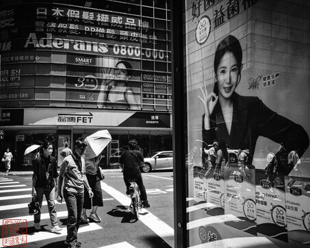 Sous les préaux des rues Guanqian, dans le quartier de Zhongshan, les piétons cherchent un peu d’ombre, les yeux fuyant les publicités criardes qui tapissent les murs, leurs pas absorbés par le cliquetis du monde autour d’eux.