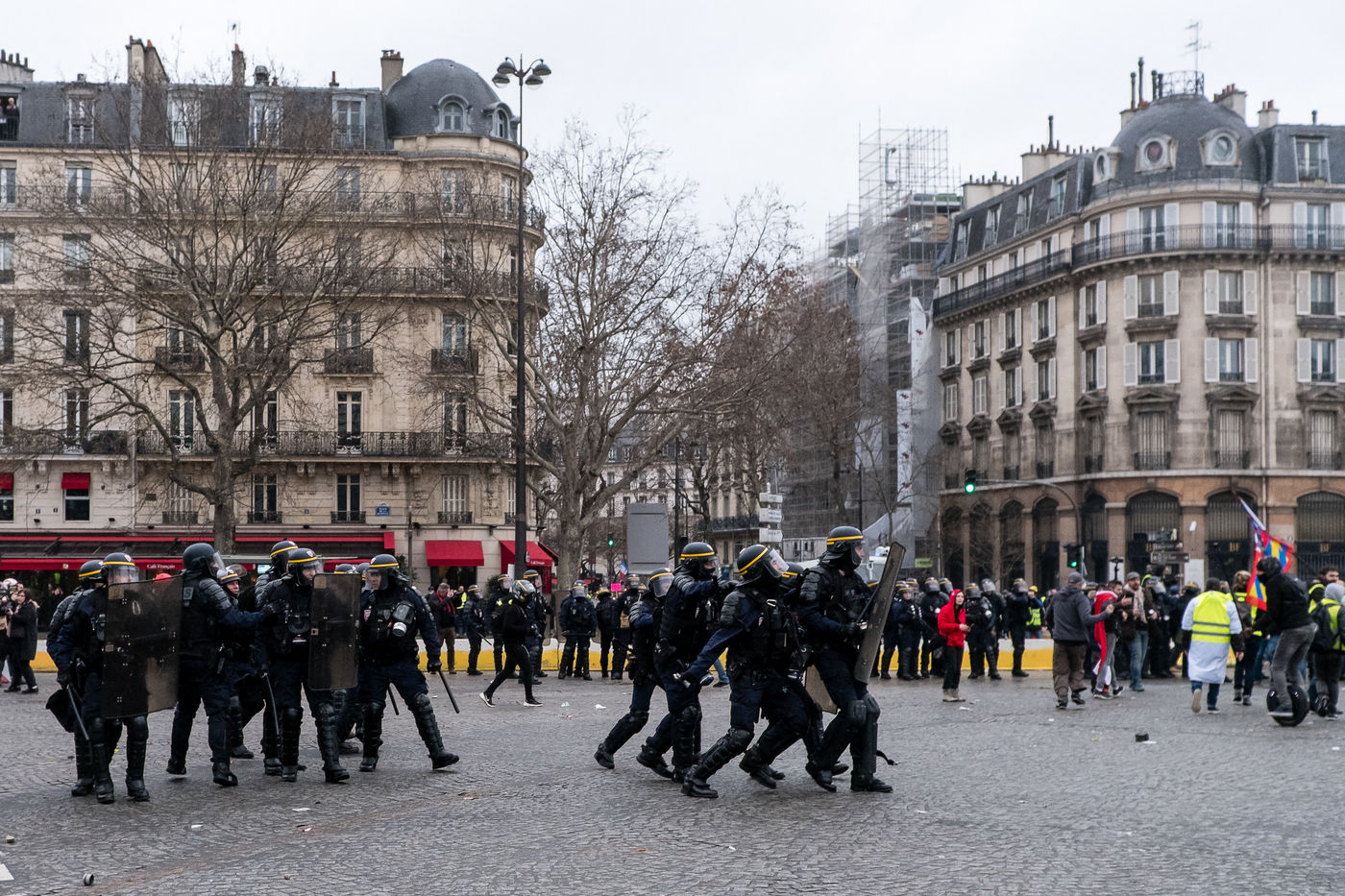 Deux cortèges se sont rassemblés place de la Bastille où des affrontements ont eu lieu avant d'investir la place de la République qui fut nassée et copieusement gazée.