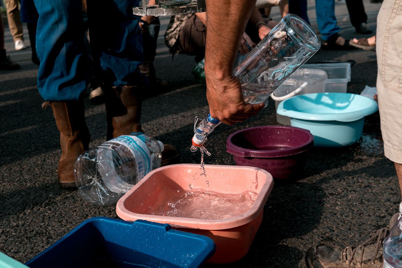Action in front of the Chamber of Agriculture by environmental activists in support of the Earth uprisings which have staged the dissolution of the "co-management" of the State and the FNSEA. After raising slogans written on toilet paper, they dissolved the slogans in basins of water, then threw the wet paper at the Chamber of Agriculture. Tours 27/06/2023.