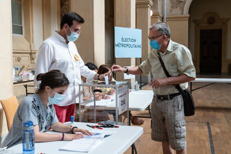 Illustration du second tour des élections municipales et métropolitaines à Lyon où les listes écologiques sont données favorites.