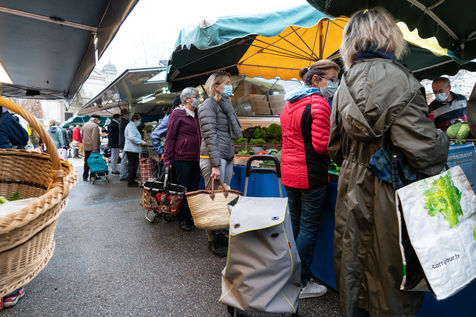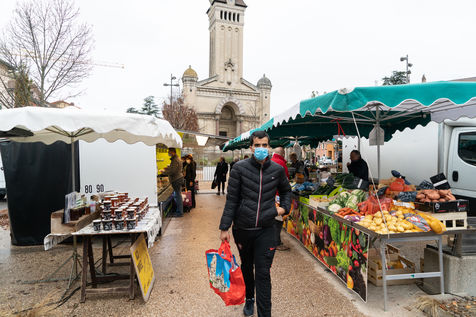 Pendant le confinement mise en place pour limiter la propagation du coronavirus (2ième vague), les marchés restent ouverts. Comme dans tout le département du Rhône, le port du masque y est obligatoire.