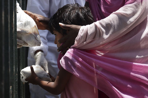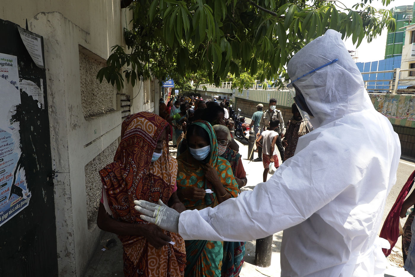 India, Chennai, 2021-06-01 Free food is being served by the humanitarian organization to the needy people during a complete lockdown imposed by the state government as a preventive measure against the spread of the Covid-19 coronavirus in Chennai.