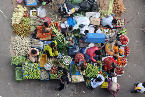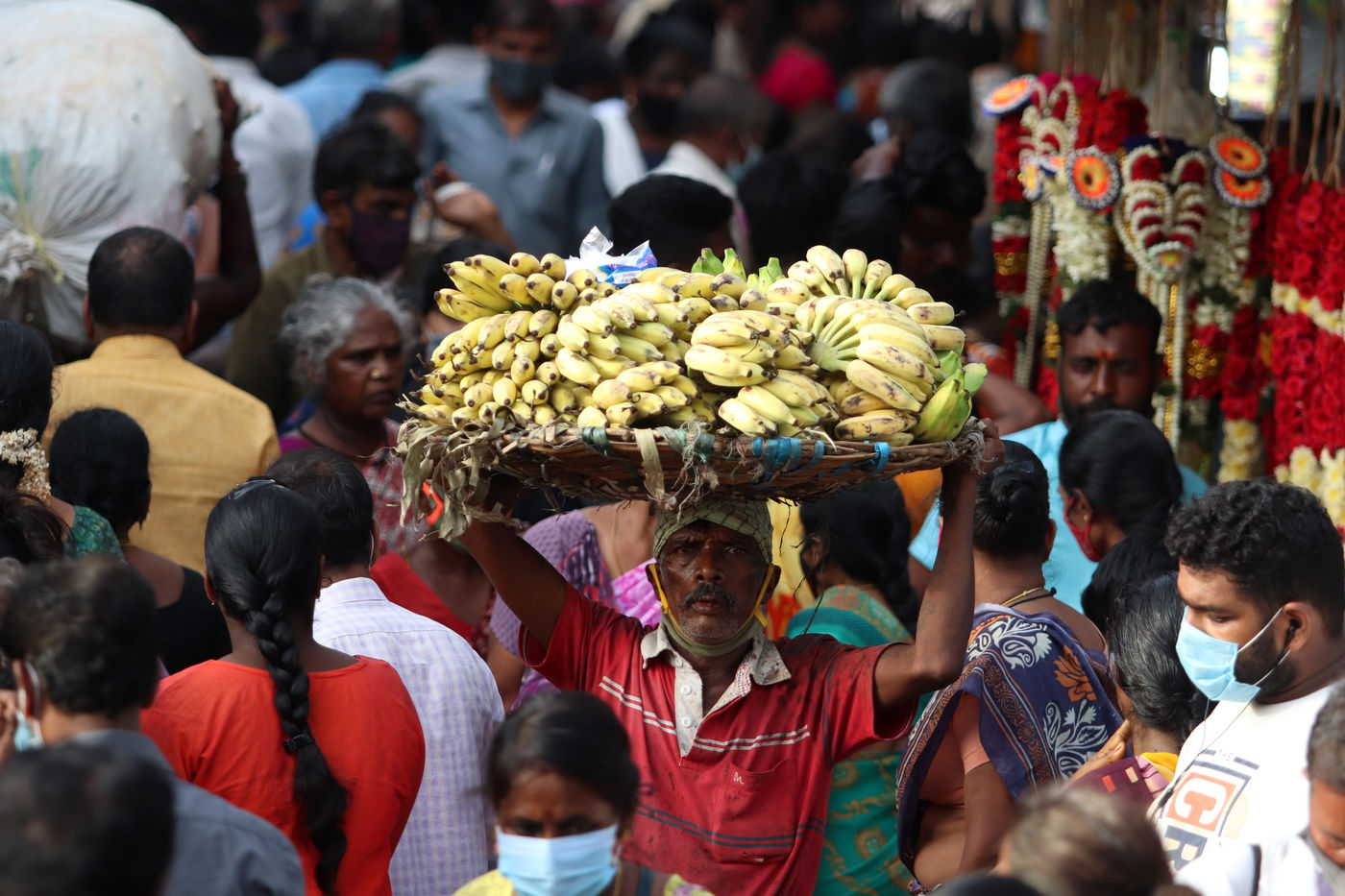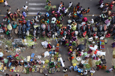 India, Chennai, 2021-09-09. A vendor arranging the idols of the elephant-headed Hindu god Ganesha, waits for customers on the eve of the Ganesh Chaturthi festival in Chennai. Photograph by Sri Loganathan Velmurugan / Hans Lucas