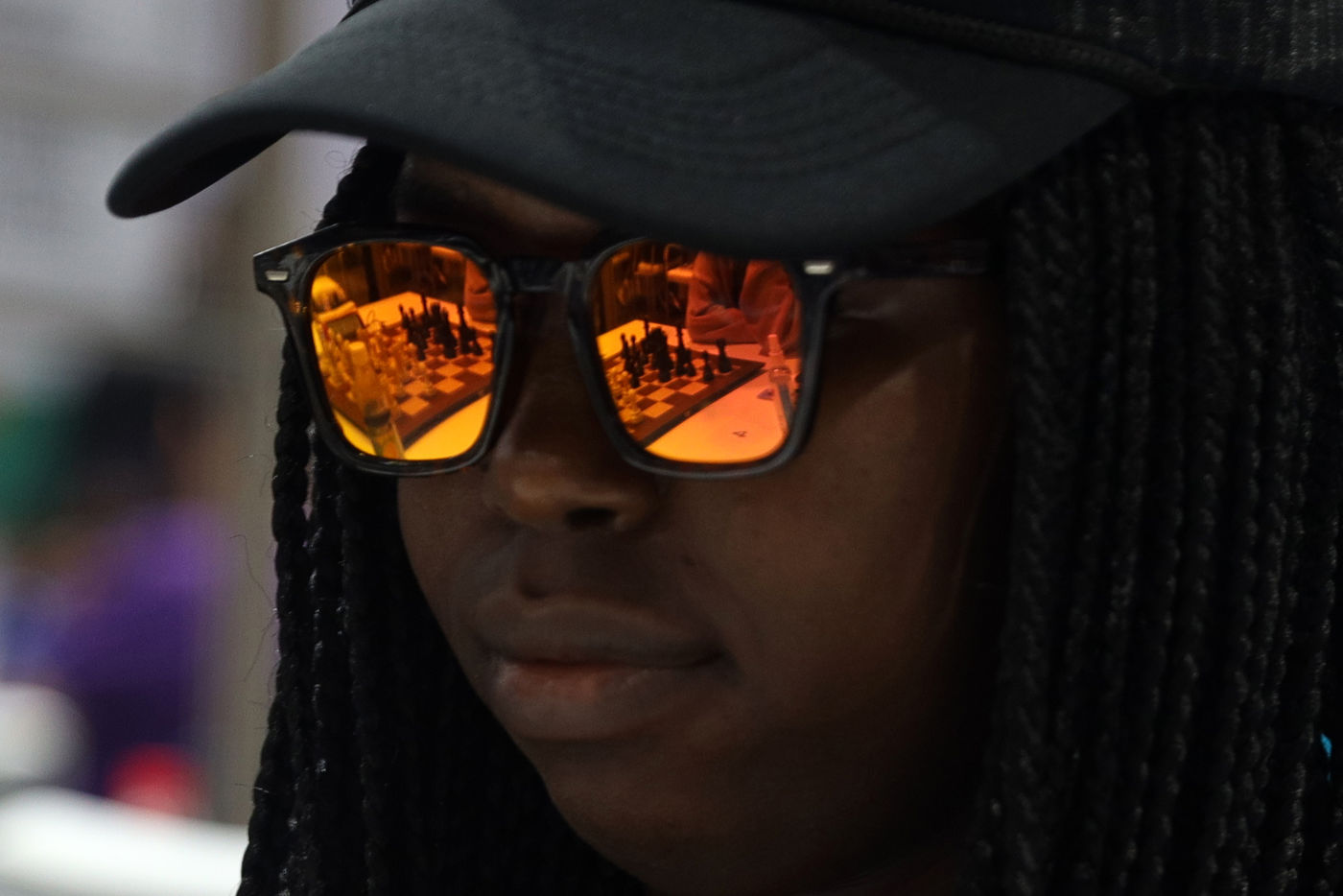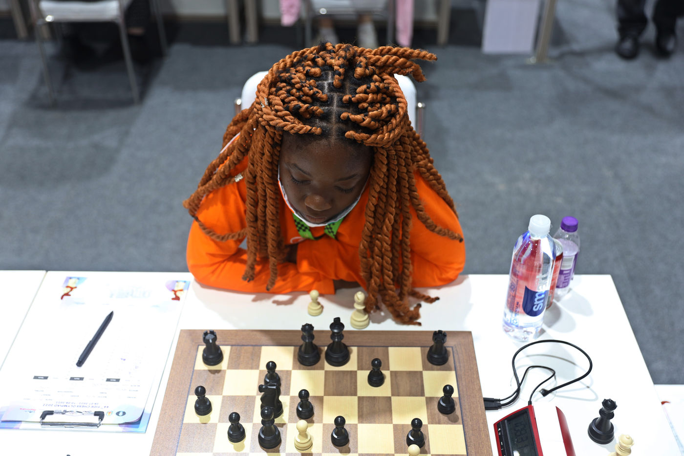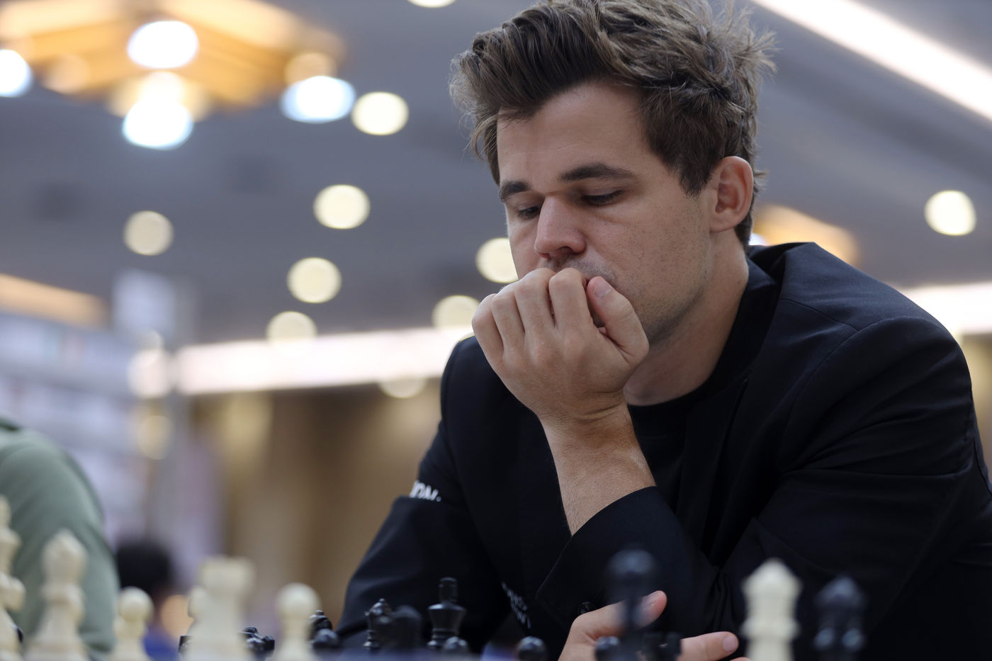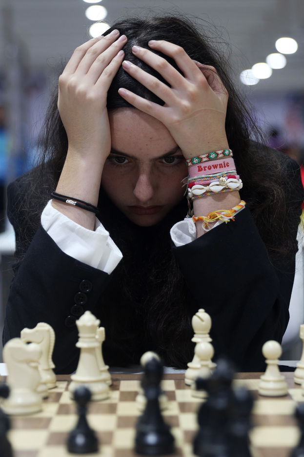 India, Chennai, 2022-08-07. An International Chess player looks on during the Round 9 of the 44th FIDE Chess Olympiad in Chennai. Photograph by Sri Loganathan Velmurugan / Hans Lucas.