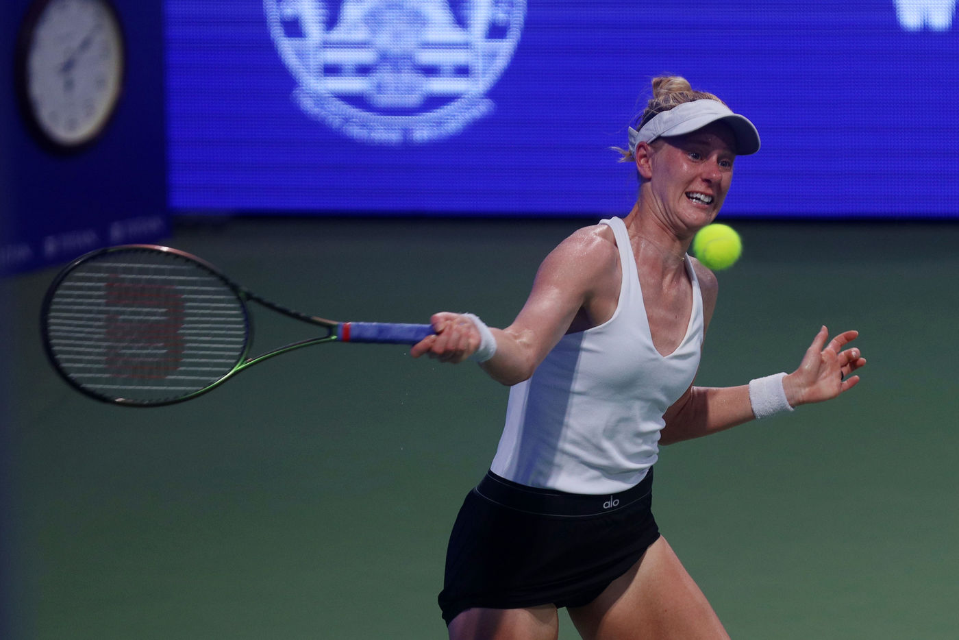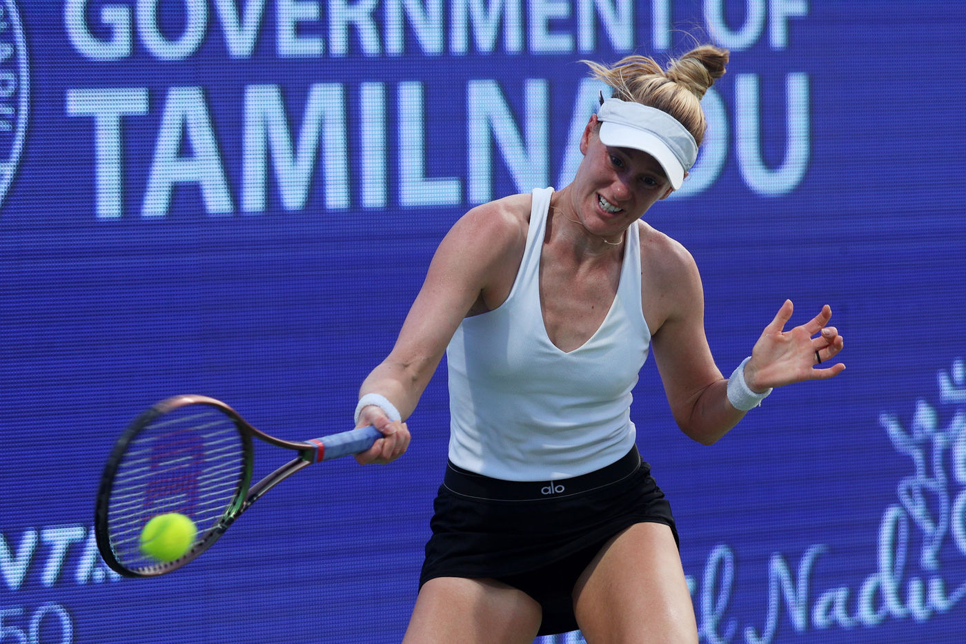 India, Chennai, 2022-09-13. USA's Alison Riske Amritraj serves against Russian tennis player Anastasia Gasanova during their WTA Tour Chennai Open 2022 tennis tournament women's singles match in Chennai. Photograph by Sri Loganathan Velmurugan / Hans Lucas.