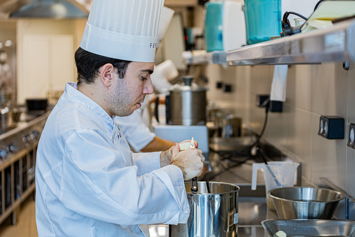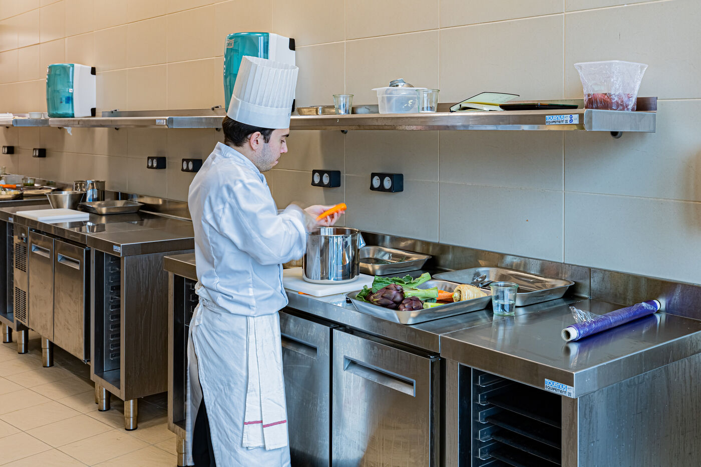 Au coeur de l'activité et de la vie dans les cuisines du campus de Dijon de l'école de cuisine Ferrandi Paris. Situé à la Cité internationale de la gastronomie et du vin qui a été inaugurée le 4 mai 2022. Le tunnel de lumière est l'oeuvre de l'architecte Anthony Béchu.