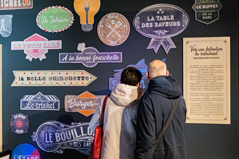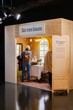 Temporary exhibition "And if we go to a restaurant ?" presented at the Cité de la gastronomie et du vin in Dijon, from 22 December 2023 to 06 January 2025. A gourmet exhibition to be enjoyed in five courses: aperitif, starter, main course, cheese and dessert for a theatrical immersion in the world of the restaurant in all its facets: its forms, its history, its professions, its social role and the changes it is undergoing. Sponsored by Michel Escoffier and Thierry Marx.