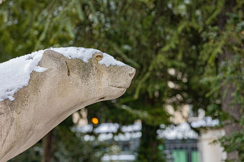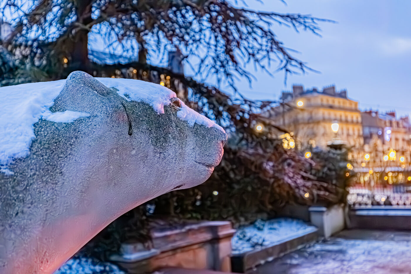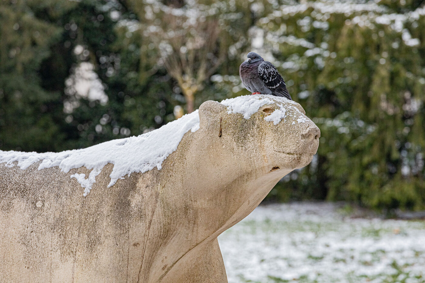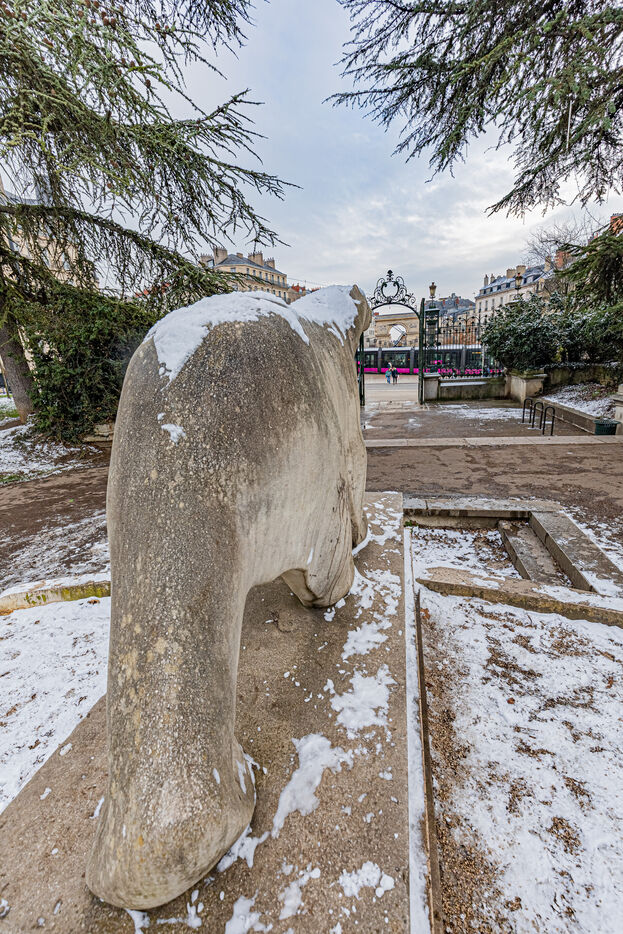 The Pompon bear in Dijon's Darcy garden is wrapped in the soft white of a winter landscape and freshly fallen snow. Then, in spring 2024, it regained its white colour following cleaning using essential oils in compliance with Ecojardins label standards.