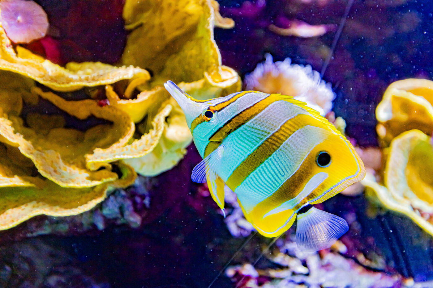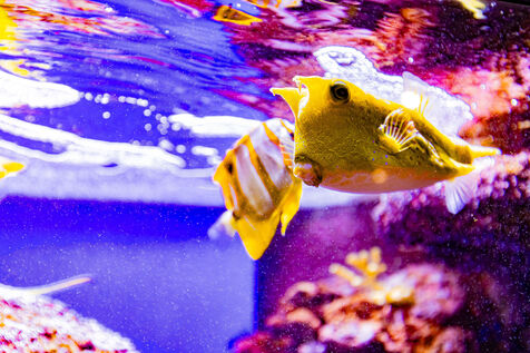 Festival de couleurs sous-marines chez Oniria, l'aquarium de Canet-En-Roussillon dans les Pyérénnées-Orientales. La richesse et la diversité des espèces de la faune sous-marine offre aux visiteurs un véritable spectacle coloré.