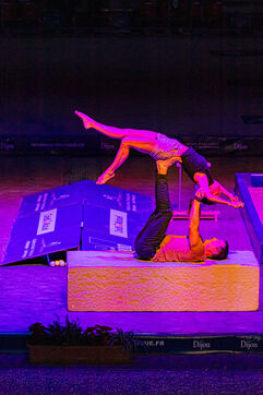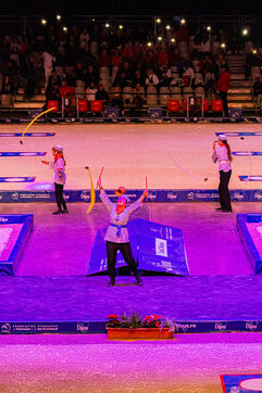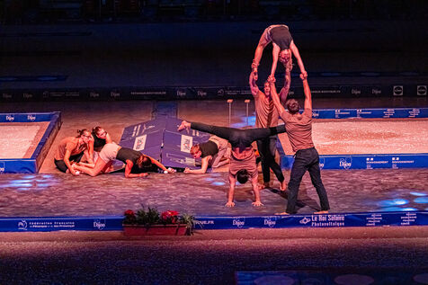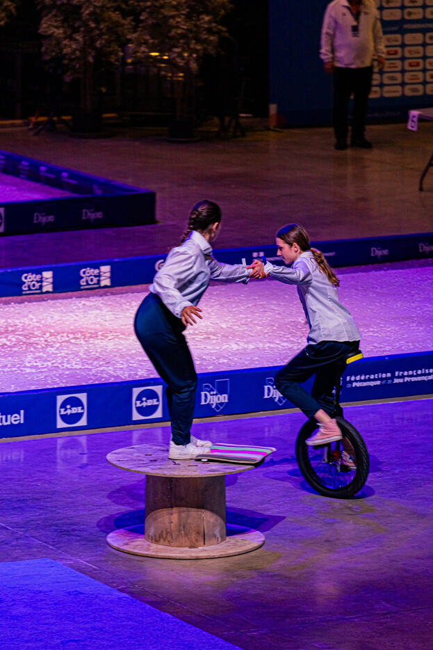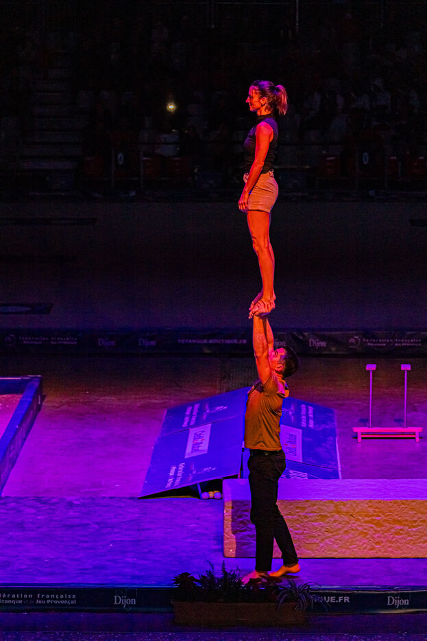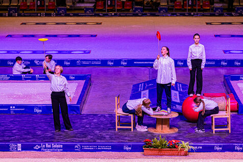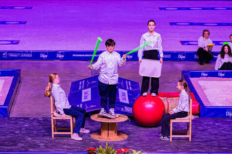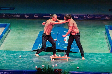 Opening ceremony of the 2024 World Pétanque Championship at the Zenith in Dijon. Presentation of the teams, referees, official speeches, circus show, juggling, demonstration, the French Pétanque and Provencal Game Federation (FFPJP) has pulled out all the stops to ensure the show before the start of the competition.