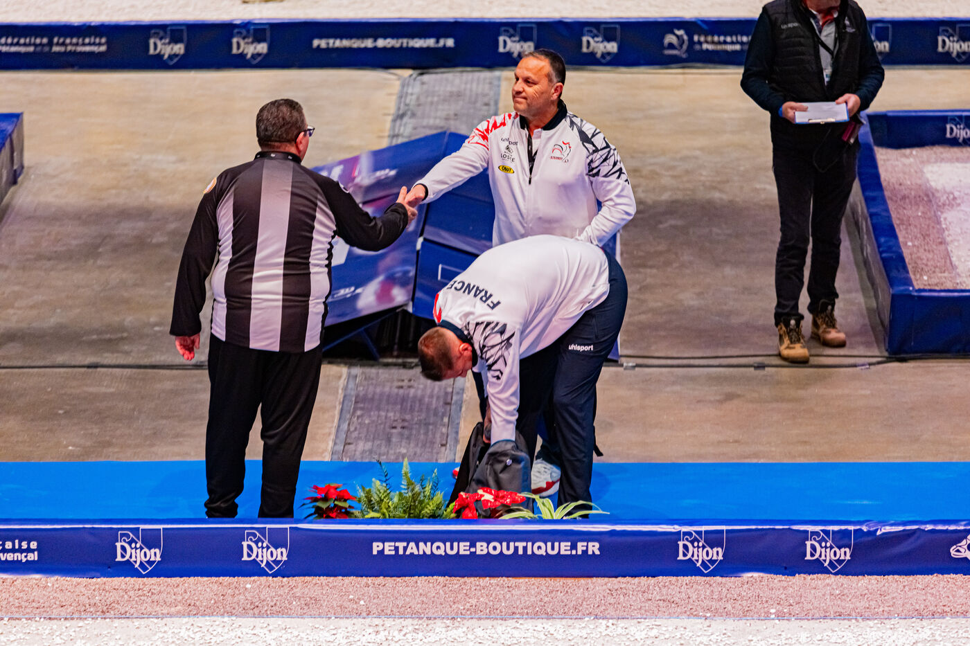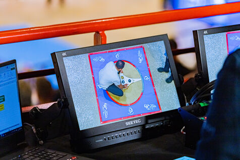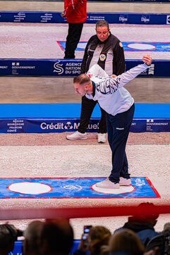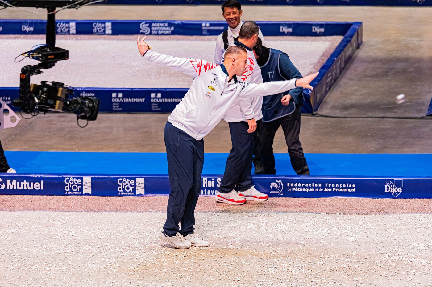 Tir de précision les qualifications avec Dylan Rocher au championnat du monde de pétanque 2024 au zénith de Dijon. Illustrations et chorégraphie typique de cette discipline. Une épreuve qui verra Dylan Rocher inscrire seulement 25 points, l'envoyant de justesse au repêchage, d'où il sera éliminé alors qu'il était favoris de la compétition, laissant passer sa chance de remporter cette épreuve pour la 4è fois d'affilée.