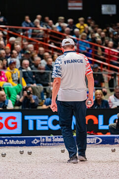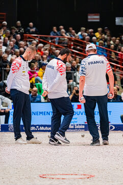 L'équipe de france à l'œuvre au championnat du monde de pétanque 2024 à Dijon, lors du 8è de finale joué contre le Mali où elle s'est imposée 13 à 0, une belle "Fanny". Elle est composée de Philippe Suchaud, Dylan Rocher, Henri Lacroix et Jean Feltain, entrainée par David Le Dantec.