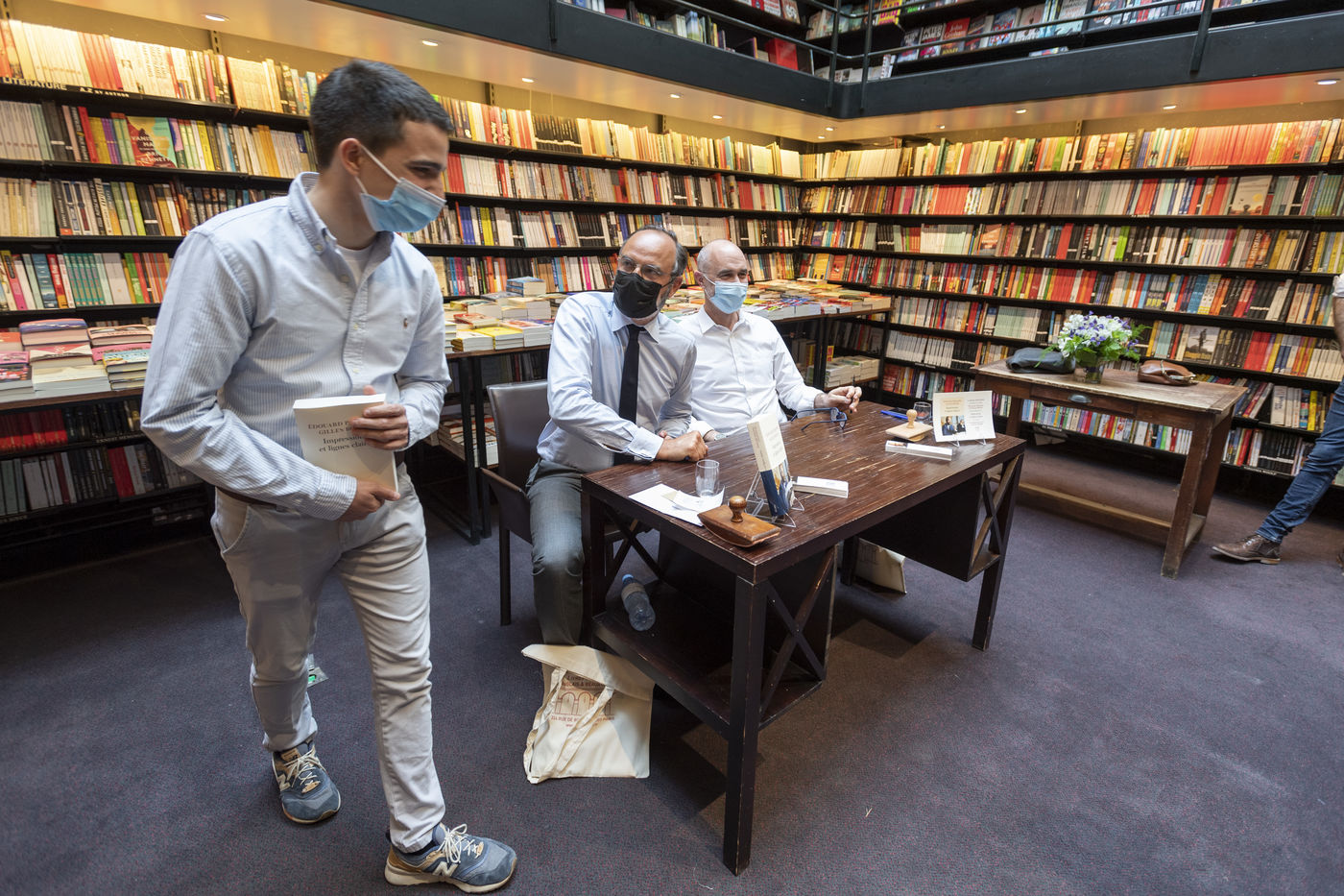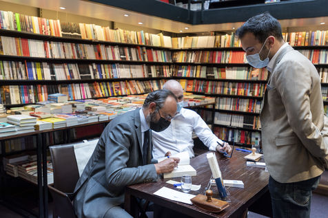 Former Prime Minister and current Mayor of Le Havre, Edouard Philippe and Gilles Boyer sign their book "Impressions et lignes claires
