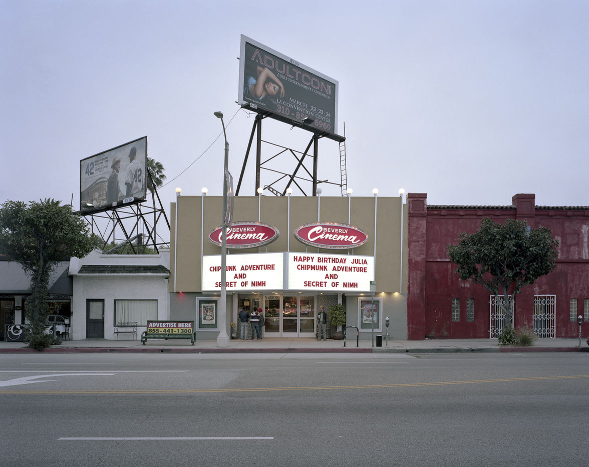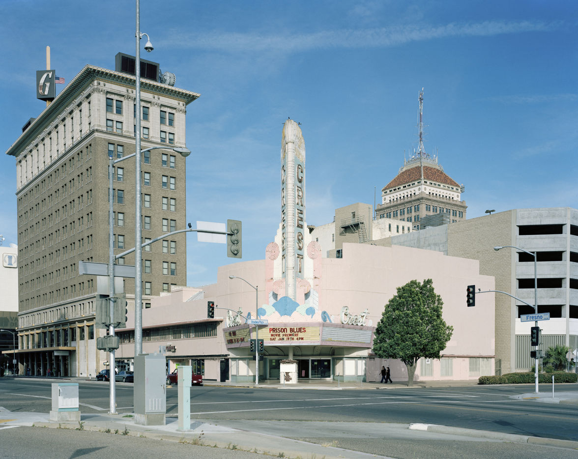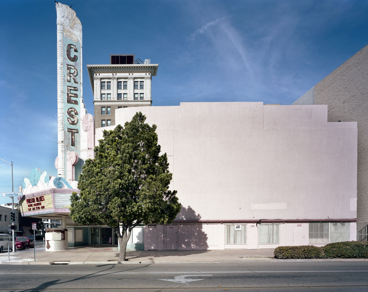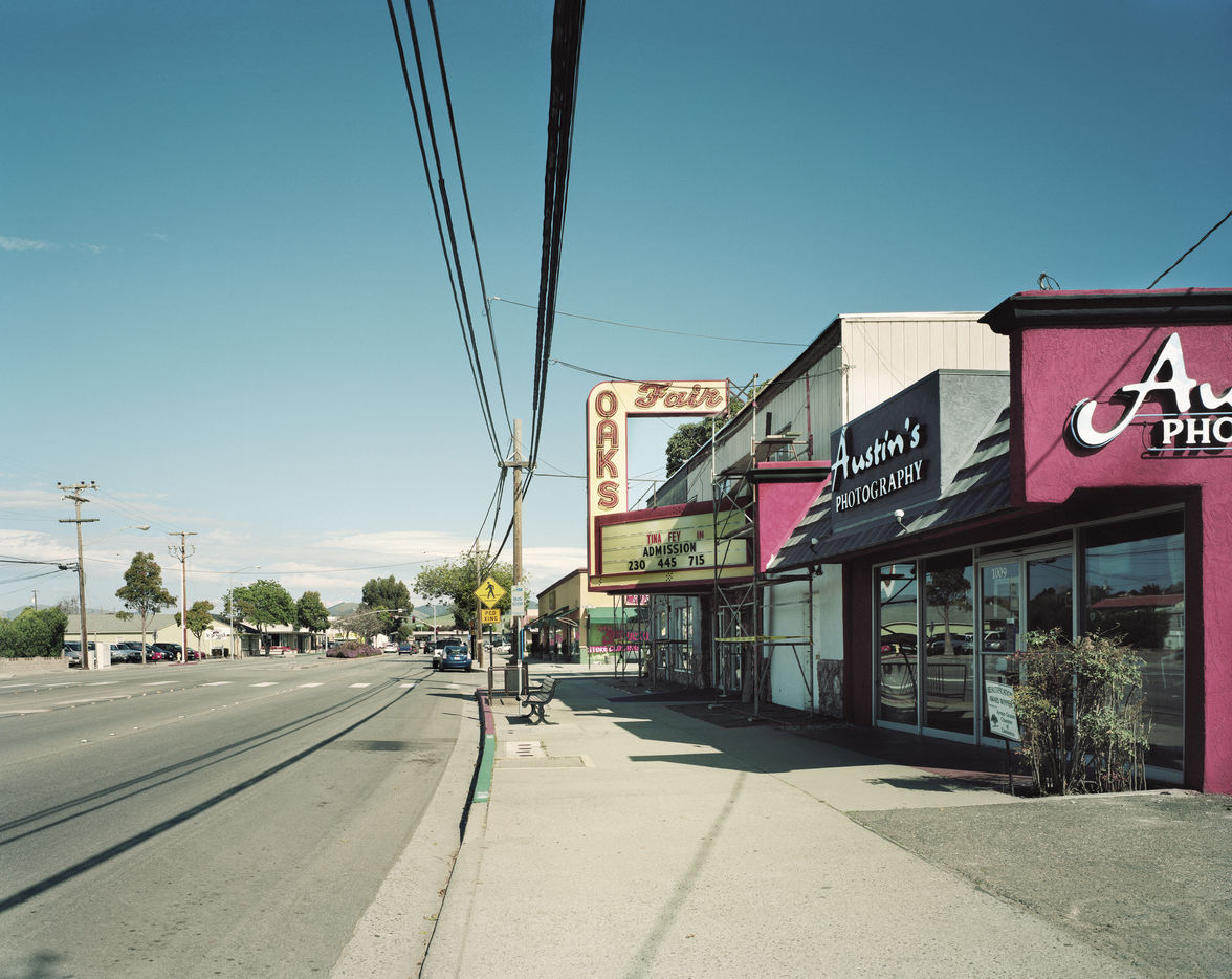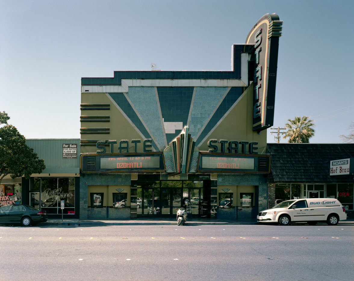 Stephan and I met several times during his photographic tour of California in spring 2013, in Los Angeles, where he began his work, and in Santa Barbara, while he was making his way up the coast. We talked often about California?s vast terrain, its coastal prosperity and the challenges for cities like Fresno further inland. Outside of Grauman?s Chinese?always a tourist attraction?the rest of the state?s cinemas are often one of its least appreciated historical landmarks. Zaubitzer?s photography, though, argues for their importance, as a way to read each location through the condition of these cinemas and their aesthetic relationship to the land, the weather, the economy, and the contextual streetscape.