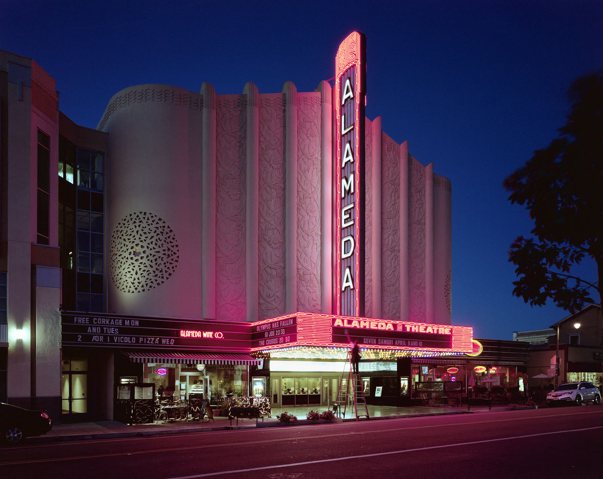Zaubitzer also captures the sense of nostalgia at these cinemas, as evidenced by the Van Buren?s sign, harkening back to the state?s orange grove days, the Mayan and Chinese and the early 20th century interest in the ?exotic,? and the neon glow of these historic cinemas.