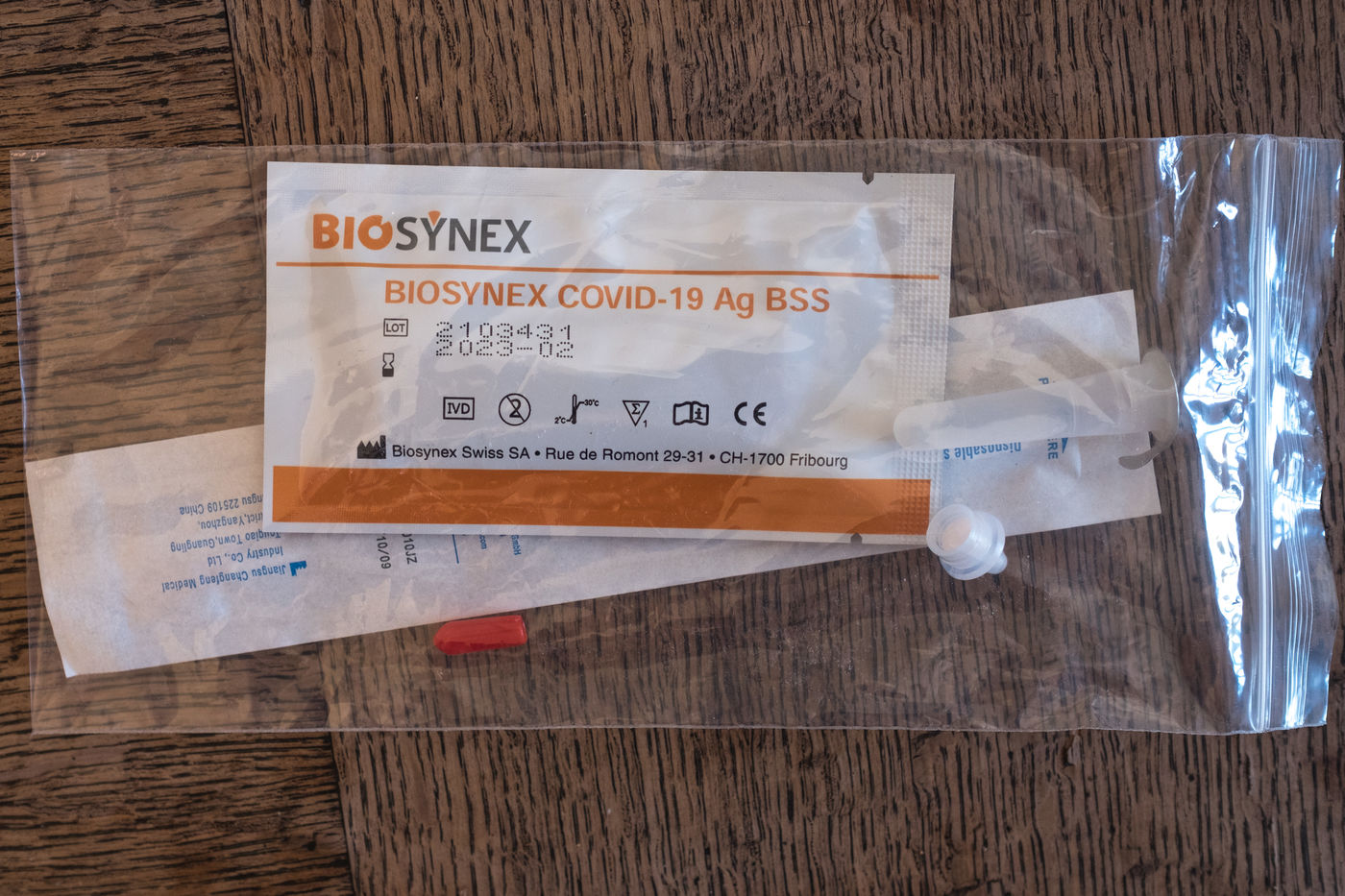 Quimper, 24 avril 2021, réalisation d'un autotest COVID-19 a la maison. Ces tests sont accessibles à tous et disponible en pharmacie.