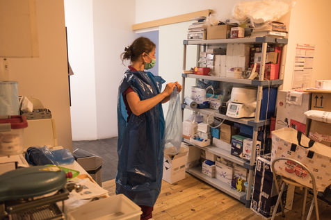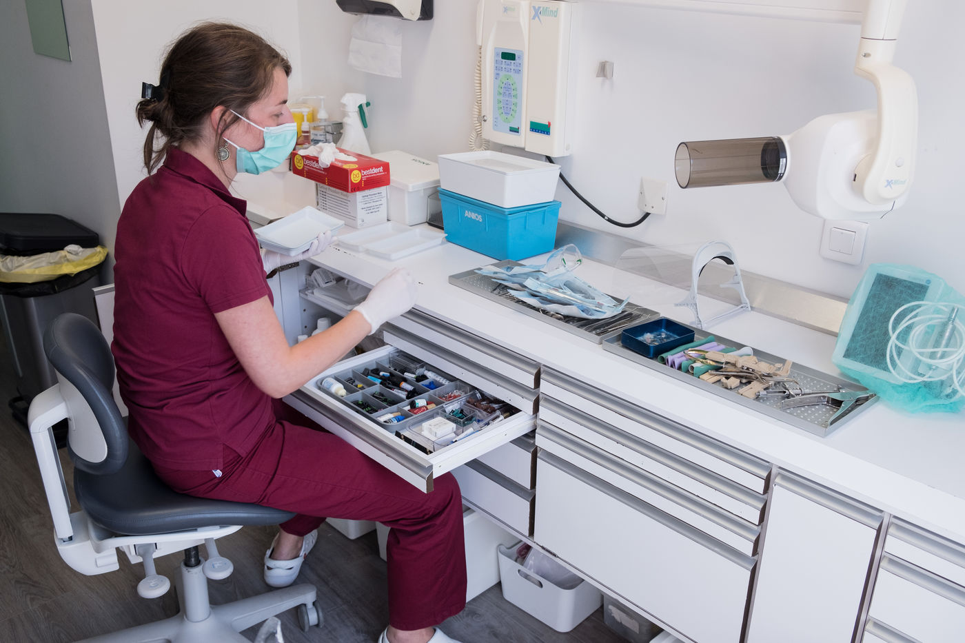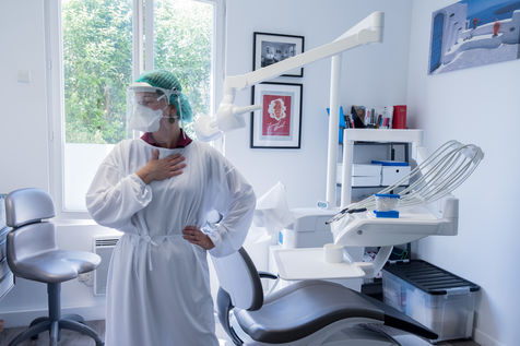 En avril 2020, Sacha B., chirurgien-dentiste, s'est prétée au jeu de l'objectif. Après cette période aux contraintes sanitaires drastiques, pleine d'incertitudes, le rytme des consultations est de nouveau sur les rails. Cependant, les prises en charge sont différentes, il y a plus d'urgences a traitées, et des soins qui sont mis en oeuvre plus tard que d'habitude. Le Covid y est évidement pour quelque chose. Certains patients, n'ont pas pu être pris en charge lors des confinements, d'autre n'ont pas consultés par peur des contaminations.