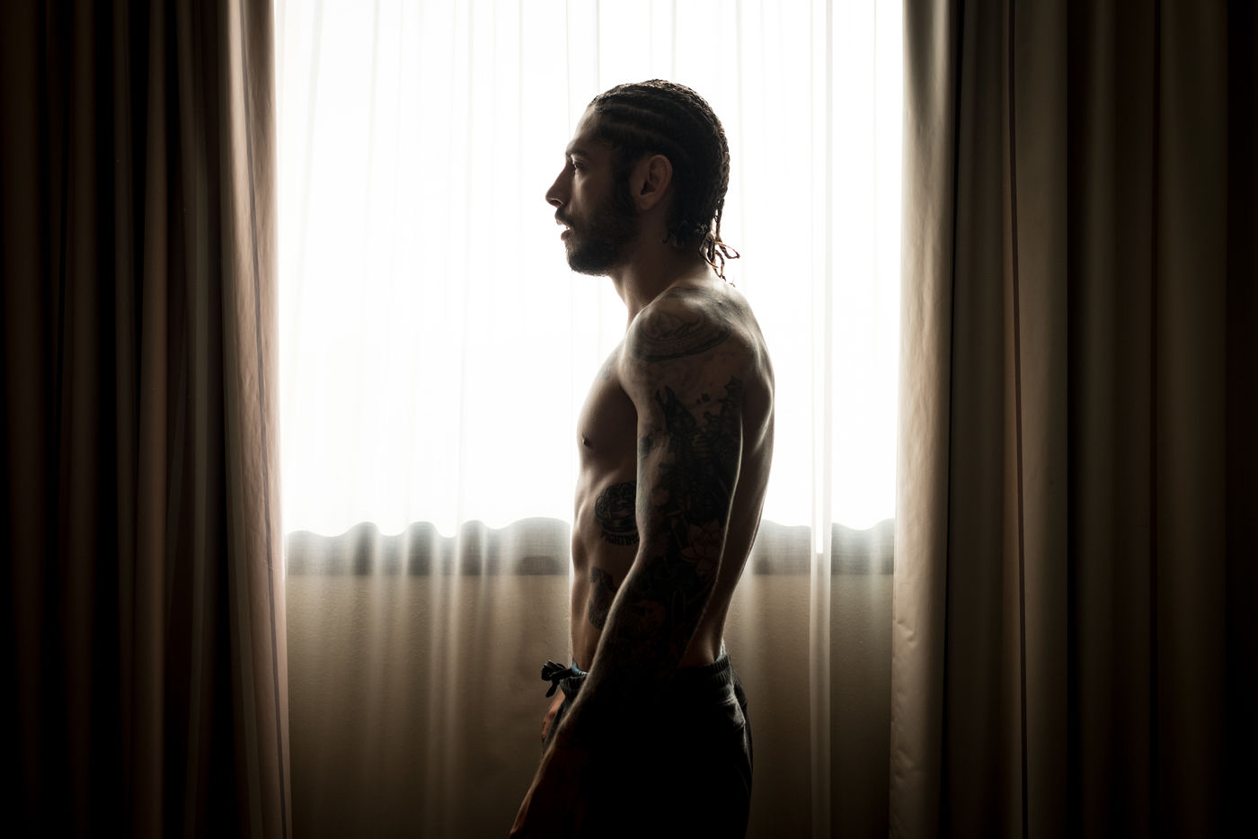 Portraits de Nessim Khettou et de Yohan Salvador, deux combattants du club de Mixed Martial Art (MMA) TFT31, et de leur coach Quentin Arola, réalisés à Nîmes lors du Gala GFA-MMA du 13 novembre 2021