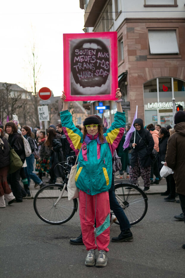 Focus on the rally at the Women's Rights Day march in Strasbourg on 8 March 2024.