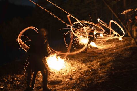 Beyond the fiery spectacle, there's an intimate, human dimension to this tradition where people of all ages gather in the middle of the forest, after climbing the steep slopes of the village, around a huge log fire. A return to our roots in the heart of nature, in an atmosphere carried by the smell and warmth of the wood fire, the crackling of the dead leaves covering the ground and the sparks from the fire floating in the wind.