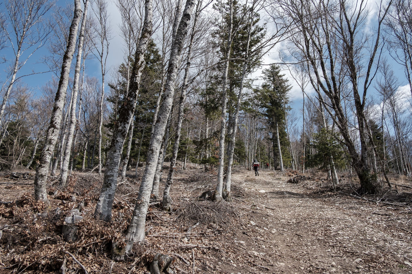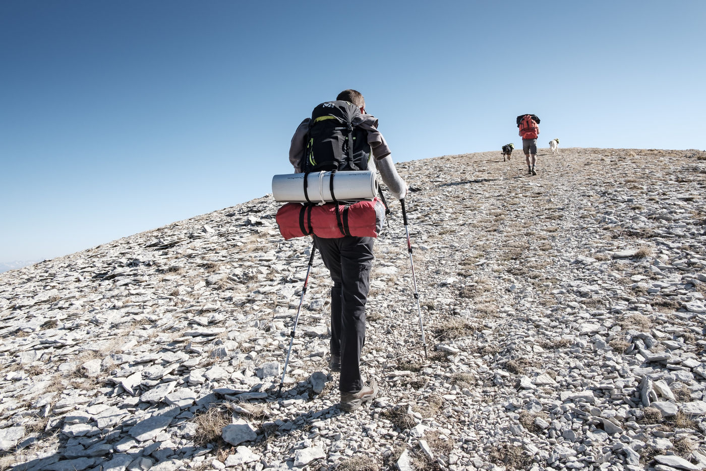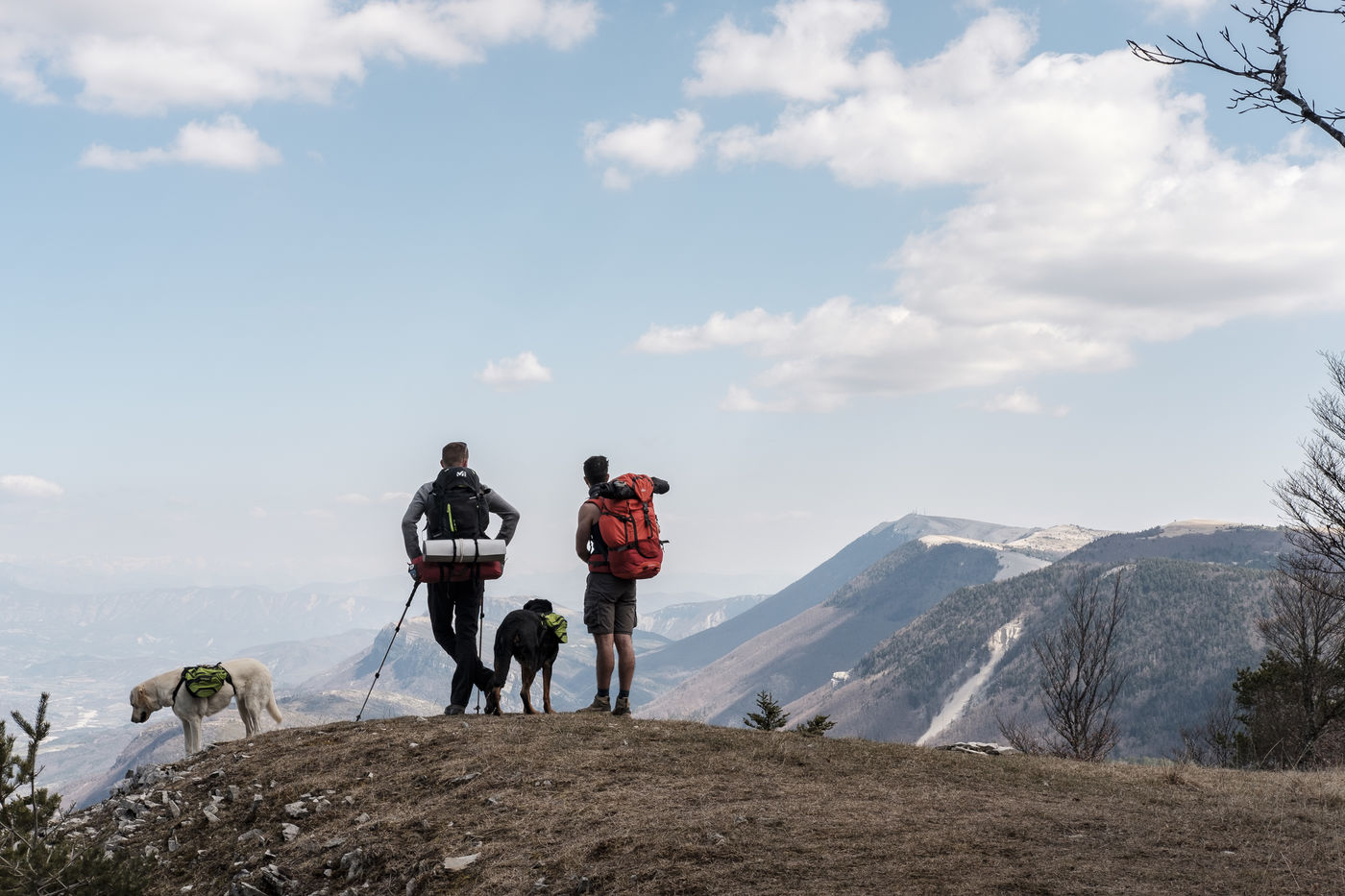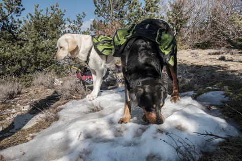En choisissant de partir avec Nessi et Gaïa, deux chiens de berger, il fallait profiter de conditions particulières : plus de neige sur les hauteurs, mais pas encore de grosse chaleur et pouvoir emmener matériel et provision d'eau pour deux grosses journées de marche. Le sentier n'est pas toujours de tout repos : il emprunte parfois des GR et parfois de simples chemins forestiers avec un dénivelé assez raide. Si la différence entre point haut et point bas n'est pas si grande, les montées succèdent aux descentes dans une oscillation permanente avant d'accéder au sommet.