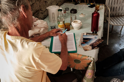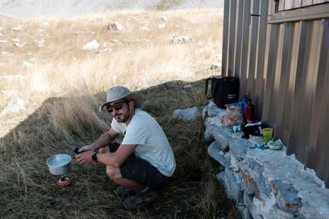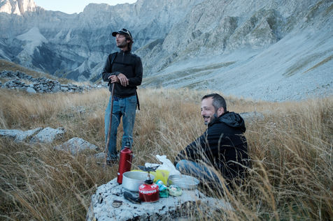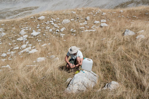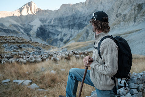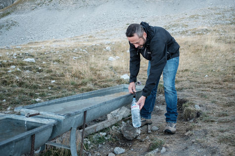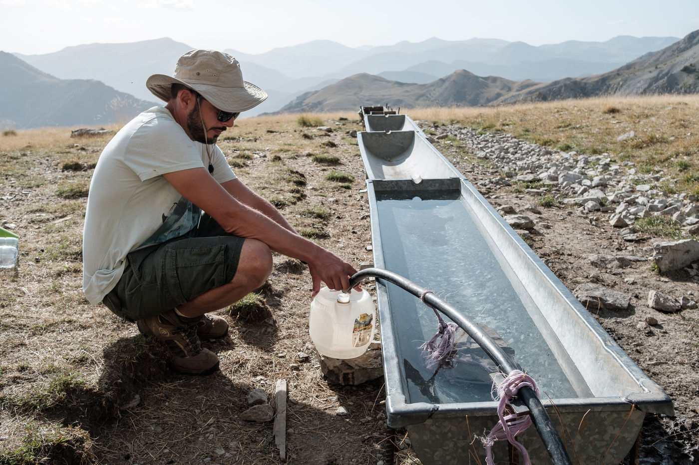 But the conditions are not easy: he has set up his tent a few metres from where the herd lies down and spends his nights amidst the sounds of bells and the barking of herd protection dogs, more than an hour's walk from the nearest hamlet; the available water is 20 minutes' walk away and the available flow is sometimes random; finally, all the food has been brought on his back.