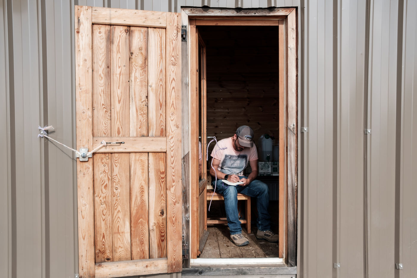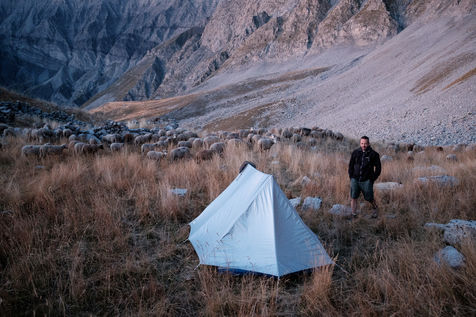 Mais les conditions ne sont pas faciles : il a dressé sa tente à quelques mètres de l'endroit où le troupeau se couche et passe ses nuits au milieu des sons de sonnaille et des aboiements des chiens de protection de troupeau, à plus d'une heure de marche du hameau le plus proche ; l'eau disponible est à 20 minutes de marche et le débit disponible est parfois aléatoire ; enfin, toute l'alimentation a été amenée sur son dos.