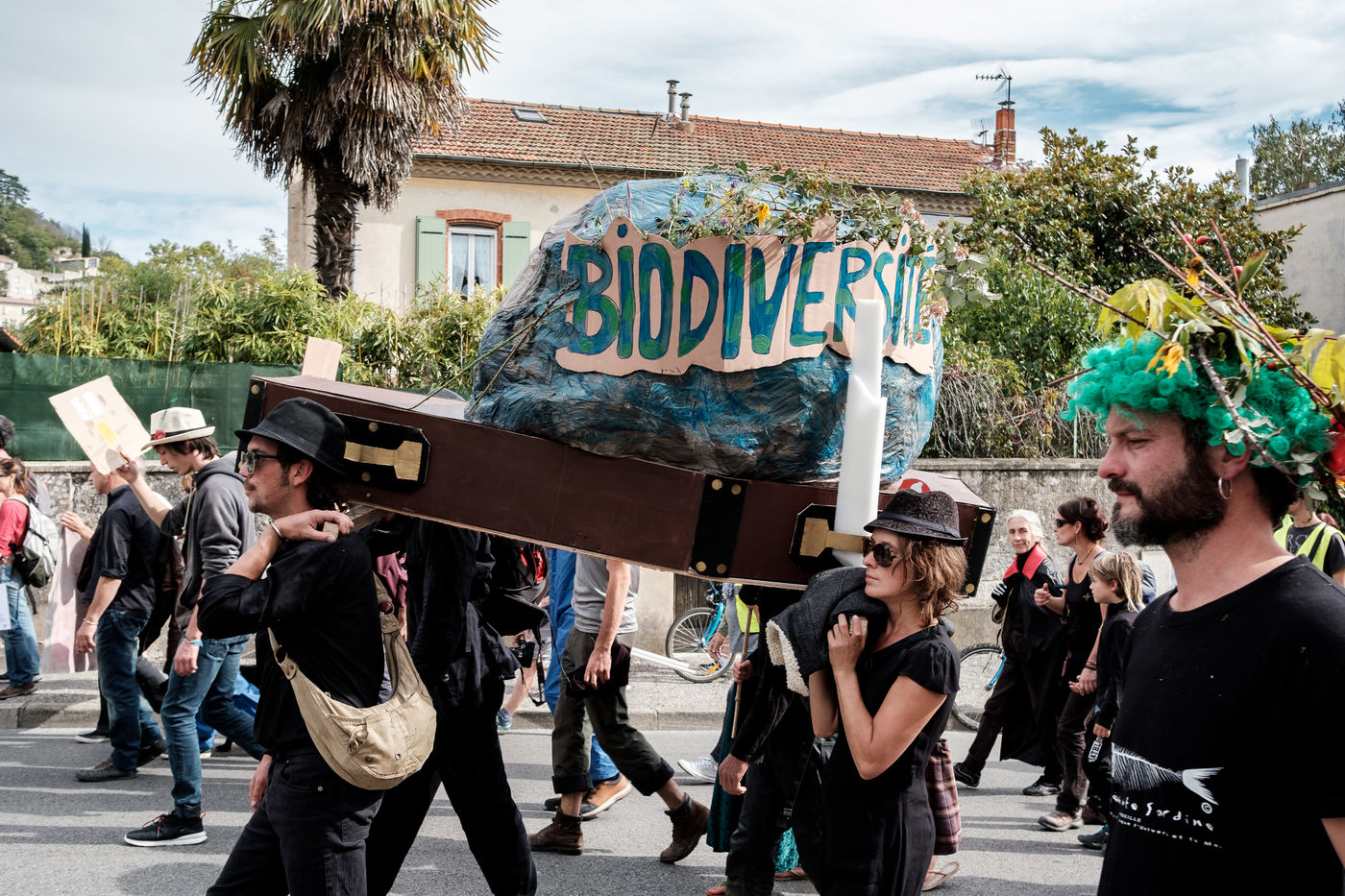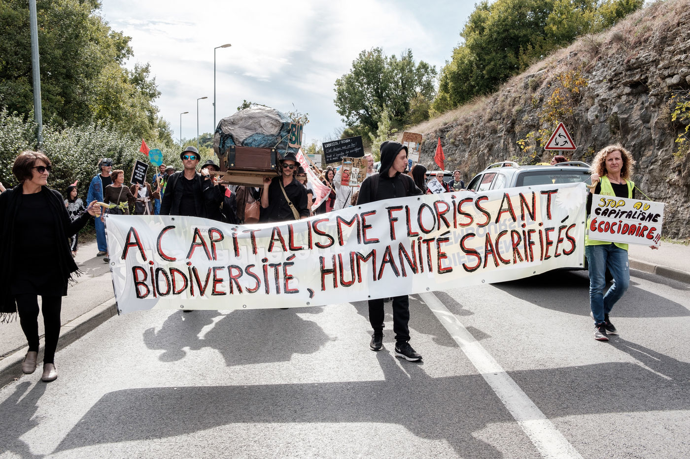 In the city of the Minister of the Interior, Forcalquier, a few hundred people gathered for a demonstration in the form of a "Carnival of the End of the World", on the eve of the launch of the October International Rebellion (RIO), which must see many actions of mobilization in favor of the living world. At the call of the local Rebellion Extinction group, other groups joined the demonstration (Yellow vests, Attac...).